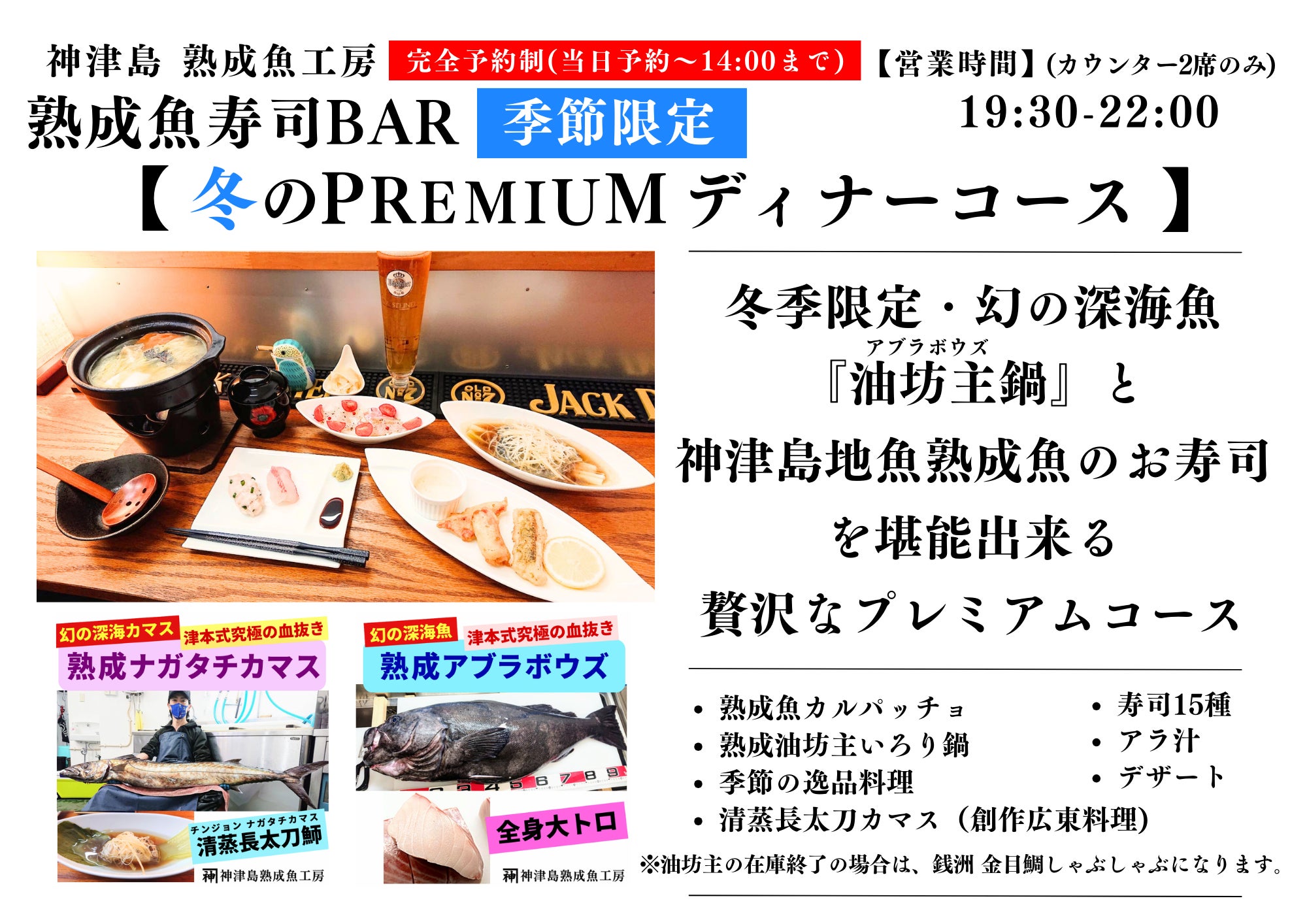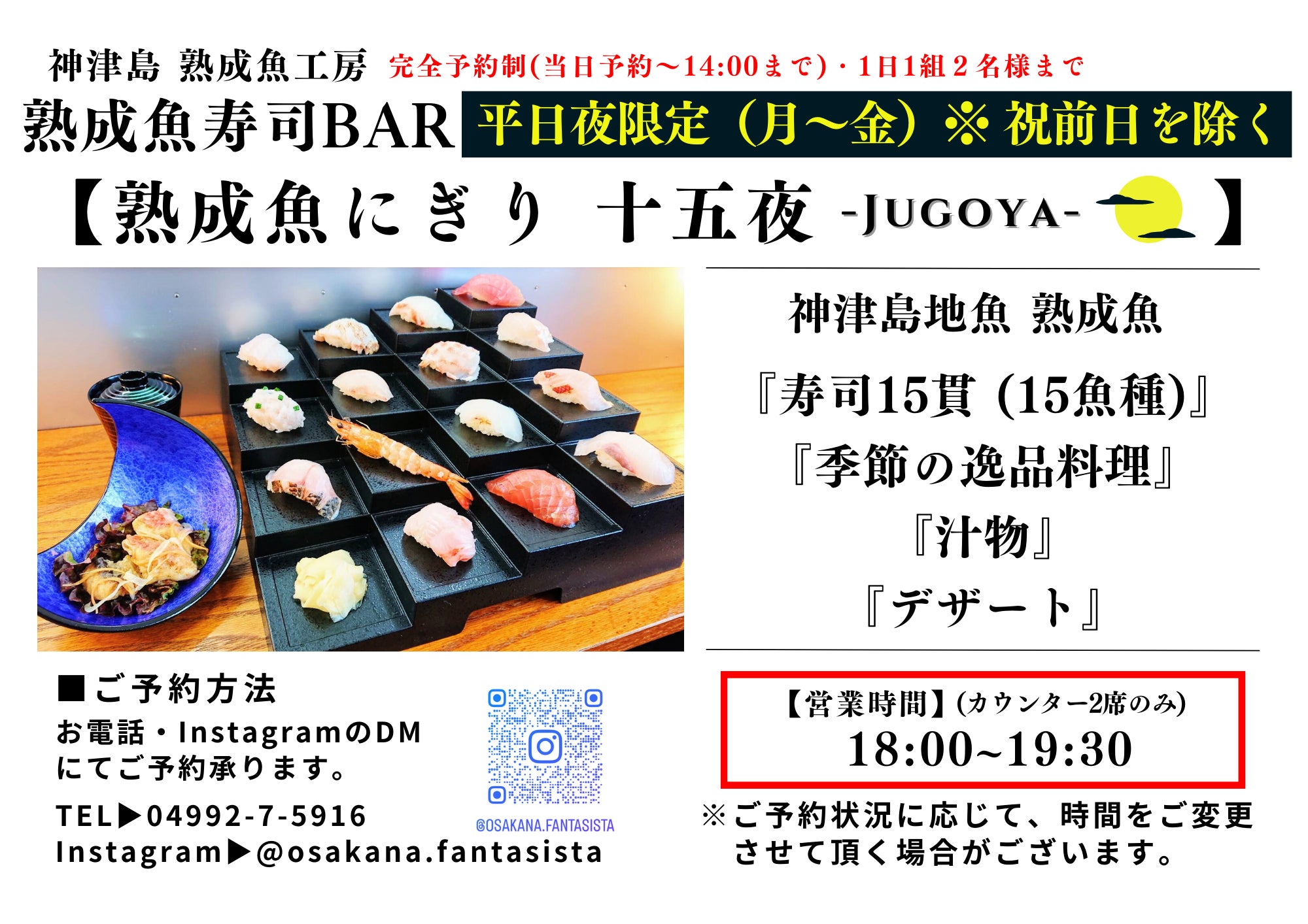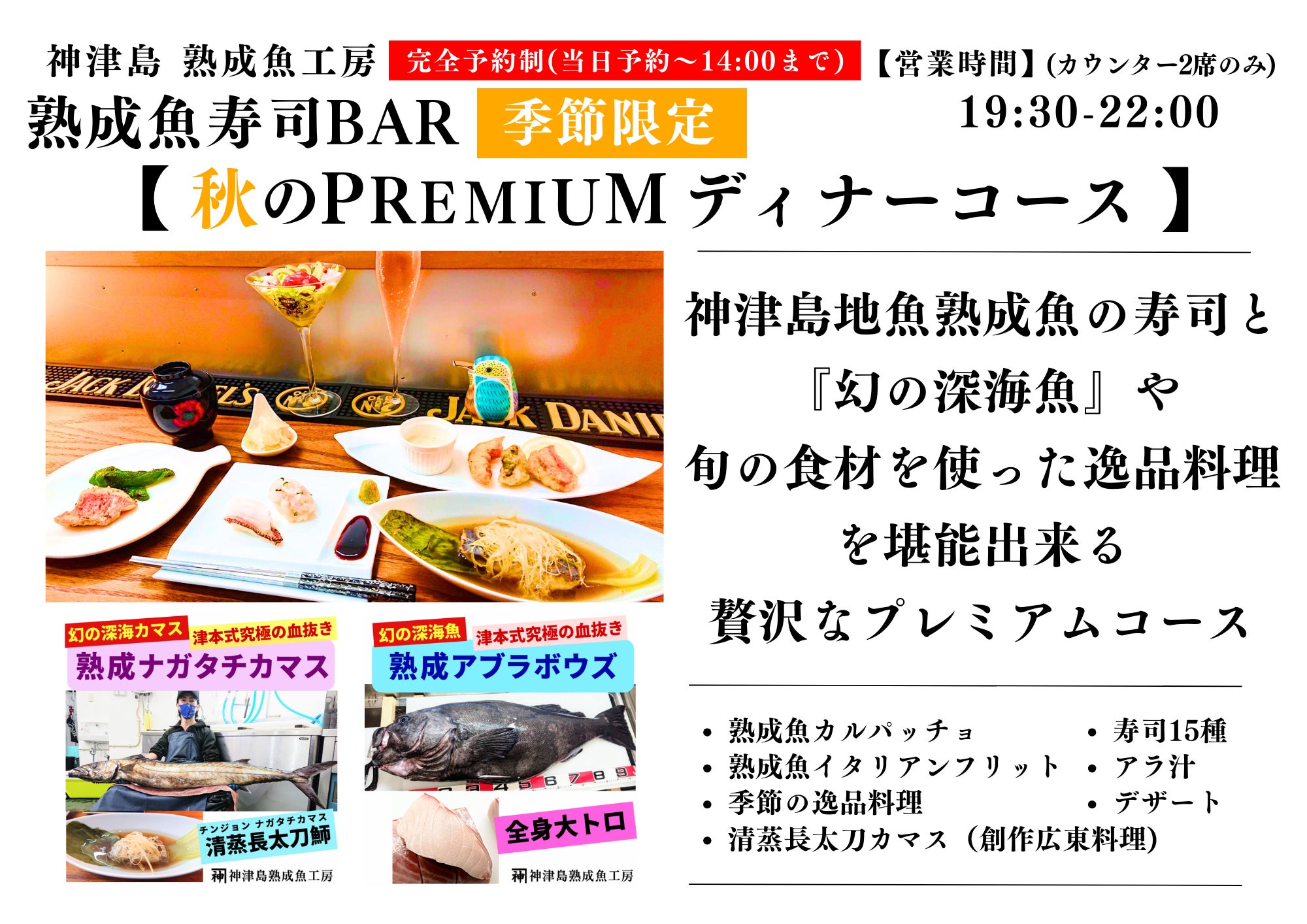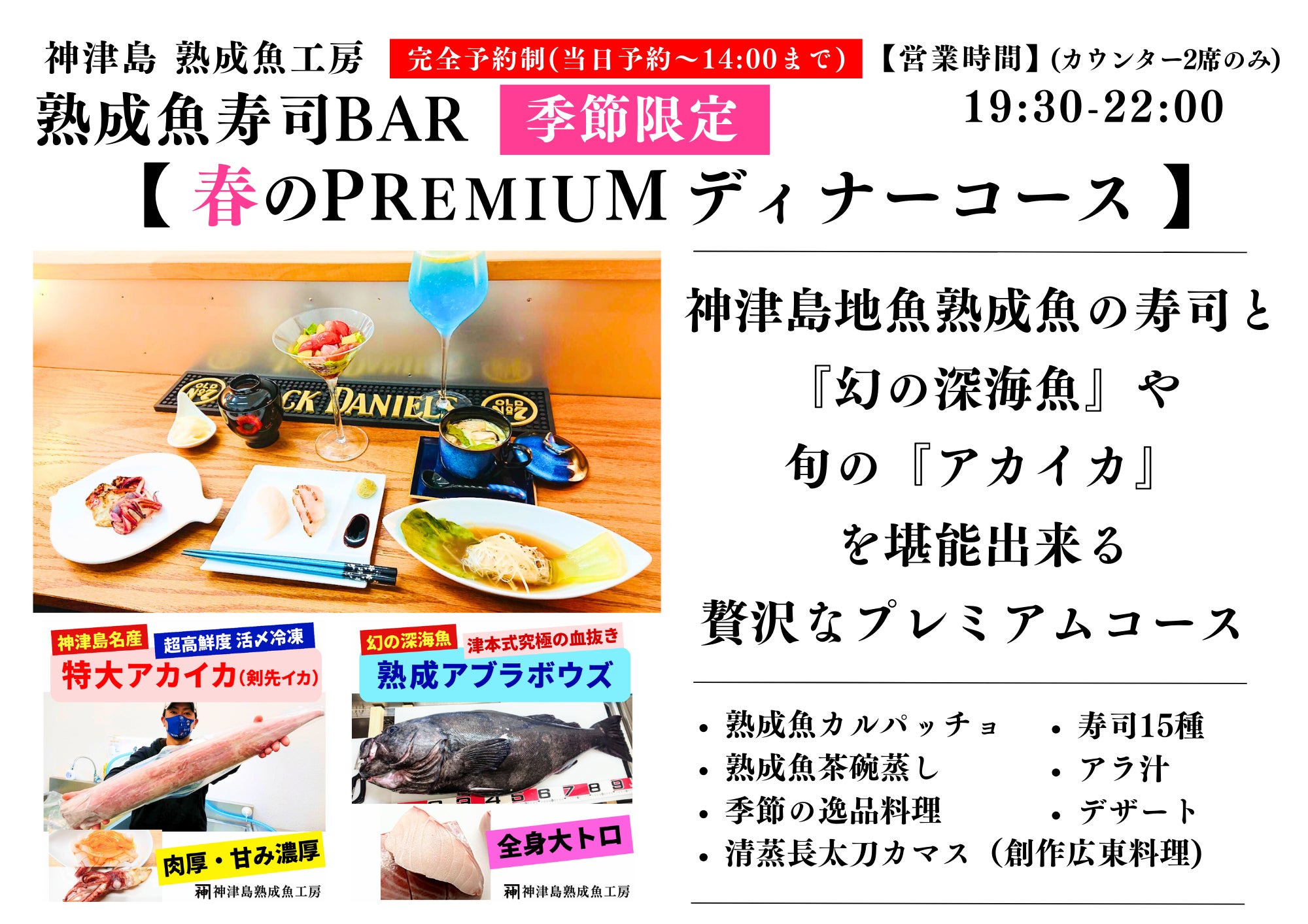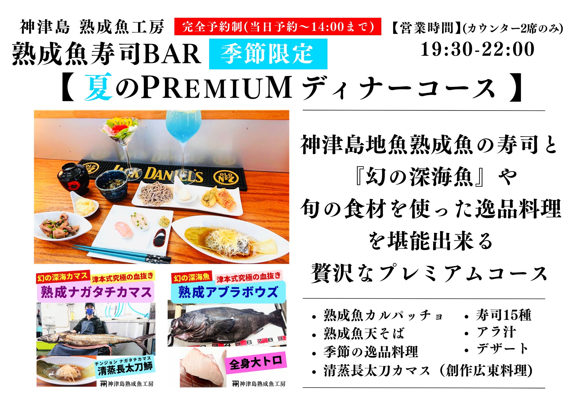 美味しい神津島産の魚介、新店舗・熟成魚寿司BARを楽しんでいただければ嬉しいです!