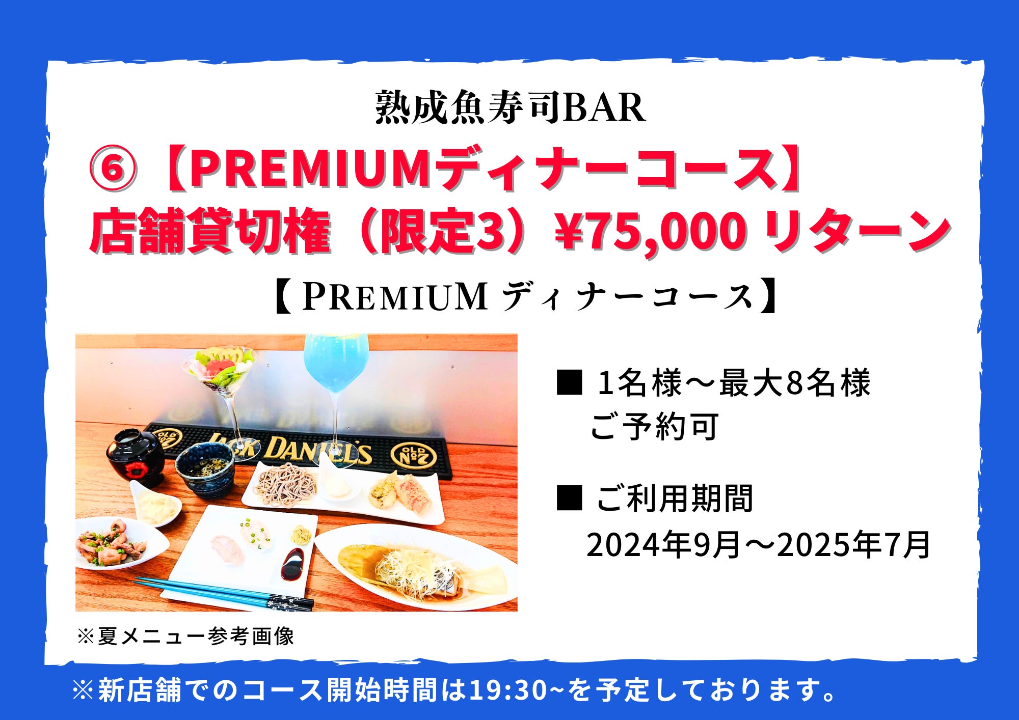 6.【PREMIUMディナーコース】 熟成魚寿司BAR 店舗貸切権(限定3)