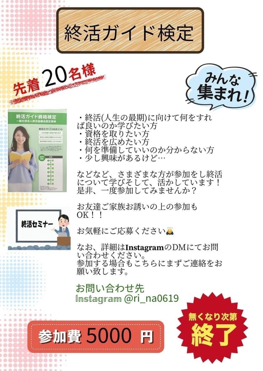 終活ガイド資格の知名度的には自分が想像している以上に広まっておらず、驚きました。