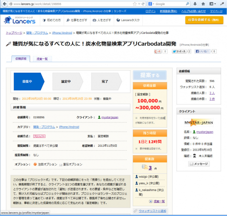 2013/10/30 04:46みなさま お世話になります! マイスター・ジャパン 谷口です ご支援いただきましたCarbodataですが、 愛媛県在住のエンジニアに発注をさせていただきました! 以下のメッセージをいただきました --- 河野です 私はMYSTAR-JAPAN様の団体のように、世の中の自分が問題だと思っていることに対し、解決するように行動を起こしている方々を本当に尊敬します。(私も含め、問題意識はあっても、自分が変えてやるぞ!とはなかなか行動に移せる人は少ないためです) また、私は基本的には健康なのですが、自律神経のバランスが崩れやすいようで、季節の変わり目などは体調を崩しやすいため、健康についてはかなり関心があります。健康に関する本も気づけば30冊くらいは持っています。 今回、MYSTAR-JAPAN様の取り組みに同調したこと、実際に団体を立ち上げ行動している方々と一緒に仕事をしてみたいと思ったこと、また私自身健康に関心があることから、応募させていただきました。 私もお力になれればと思いますので、よろしくお願いいたします。 http://www.lancers.jp/profile/yasu_k --- こうして共感をいただけたことを、とても嬉しく思っております。 今開発を進めておりますので、も〜しばらくお待ち下さい! どうぞよろしくお願いいたします。 谷口諭 マイスター・ジャパン もっと見る