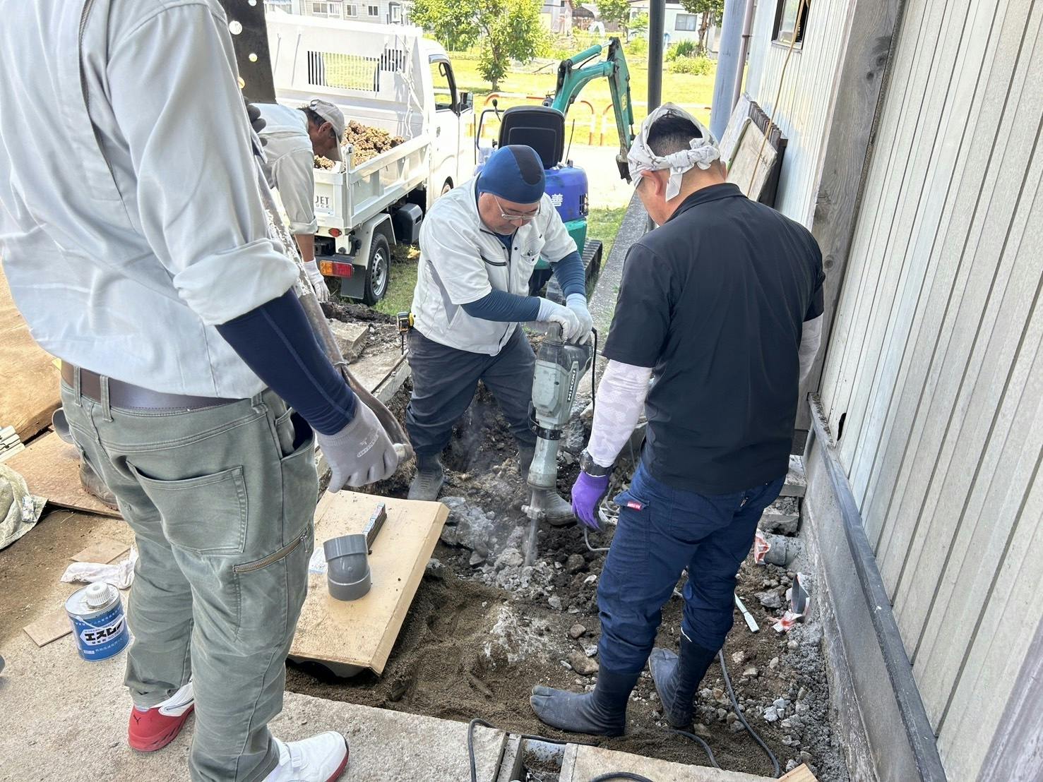 現在は下水道工事が進展中で、今日は排水をろ過する「グリストラップ」という設備を埋設する工事の真っ最中でした。