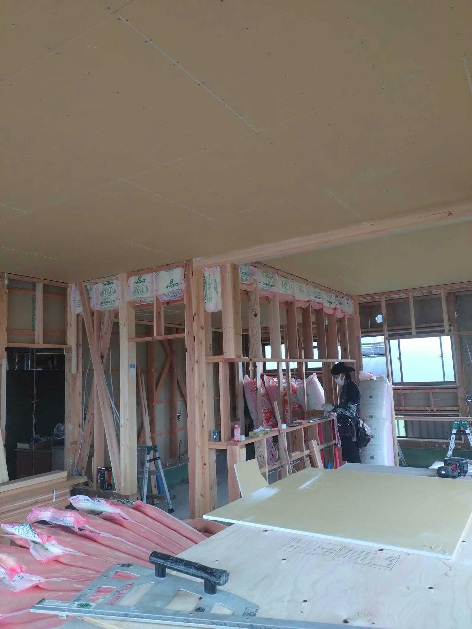電気の配線がひとまず終わり、天井ができてきました!
