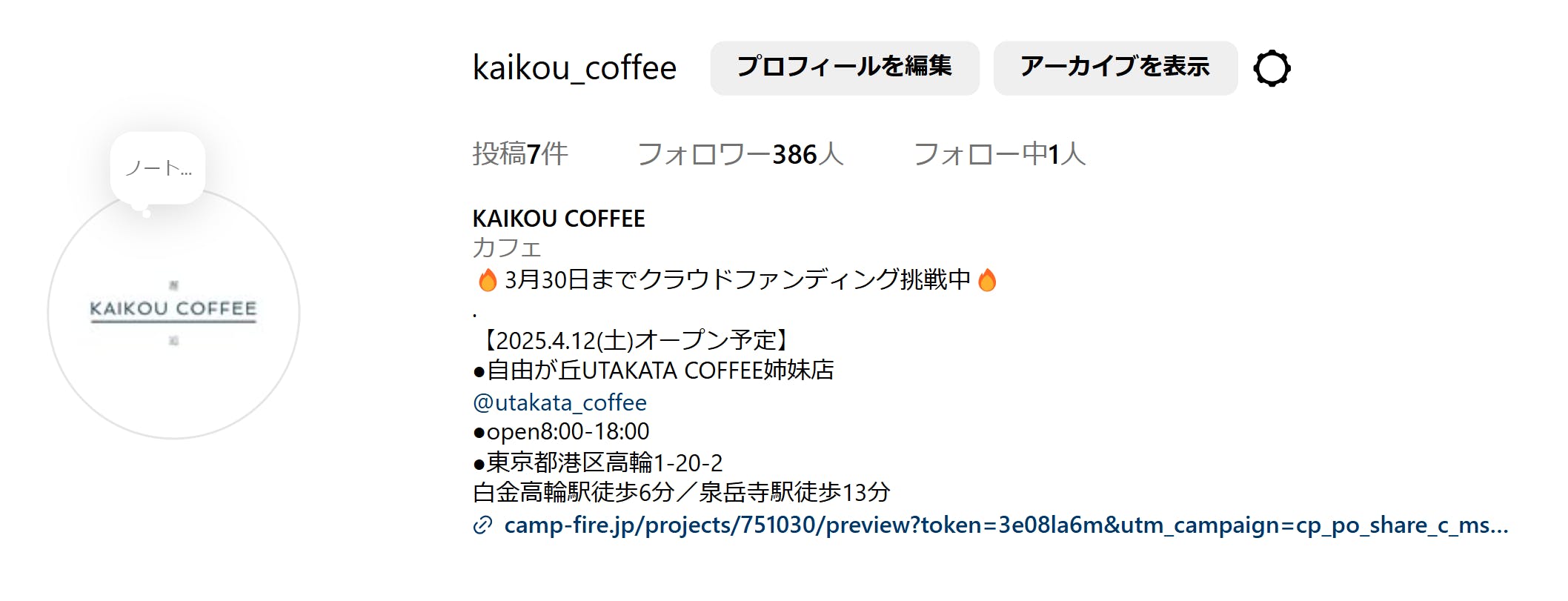 ご報告が遅くなってしまい、申し訳ございません。先日4月12日に無事、グランドオープンを迎えることができました。ご支援してくださった方々、誠にありがとうございます。これも皆様のご支援、ご声援があったからこそ迎えられたと感じております。プレオープンの時期から、地域の方々やInstagramをご覧になってこられる方、またクラウドファンディングで支援をしてくださったもご来店いただき、大変有難いことに、連日忙しくさせていただいております。しかし、営業してみると浮き彫りになってくる課題。そんな中でも暖かく見守ってくださることに、オープンしてもなお、皆様に支えられているのだということを身に染みて感じております。まだまだ若輩者の私たちではございますが、1日でも早く皆様に満足していただける空間を作り、”いつもの今日”を”ちょっといい日”にできるよう、日々精進してまいりたいと思います。最後に、改めてご支援してくださった皆様に感謝申し上げます。ぜひお近くにいらっしゃる際はお立ち寄りいただけますと幸いです。引き続きよろしくお願い申し上げます。KAIKOU COFFEE/小西修平
