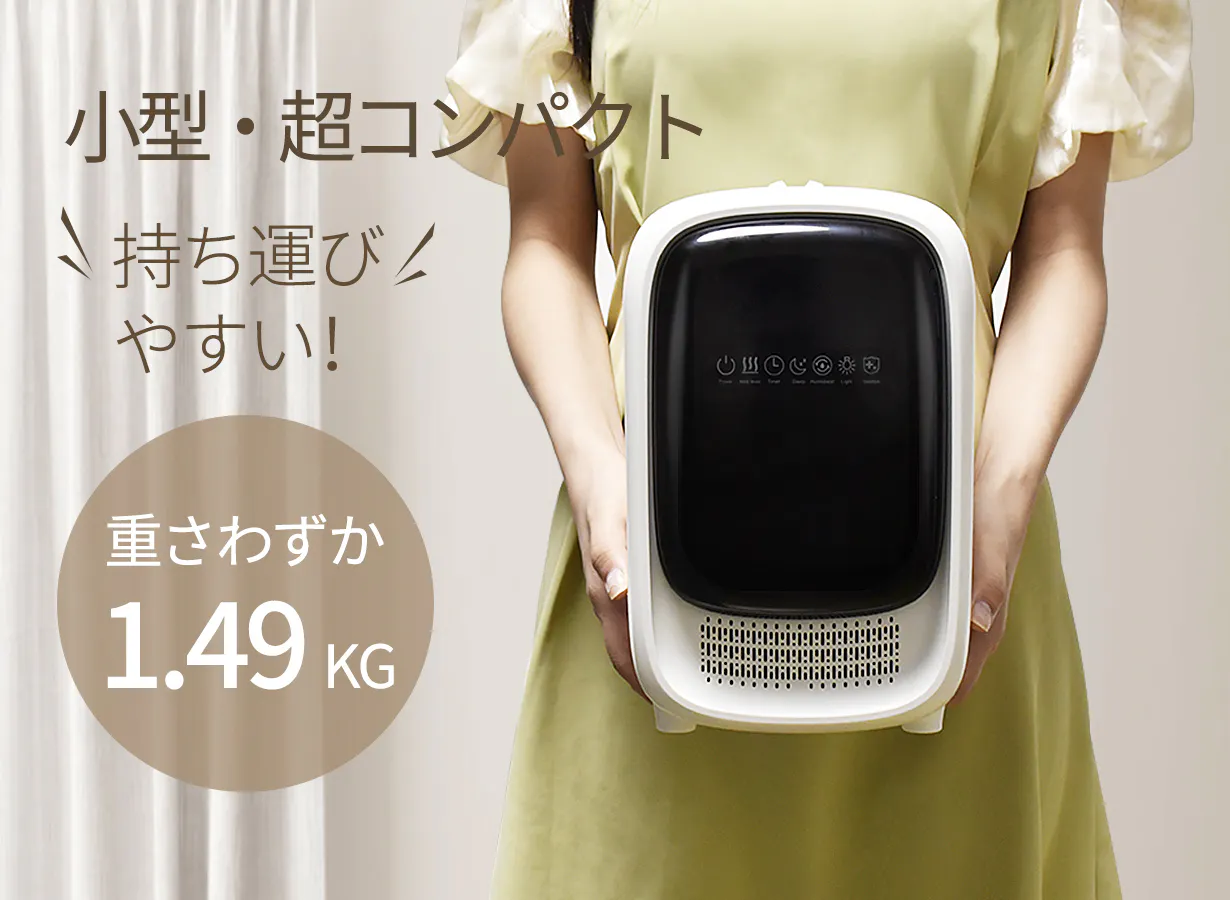 わずか1.49kgの重さと小型・超コンパクトなデザインにより、どこに持ち運んでも便利し、限られたスペースにも簡単に設置できます。シンプルな外観は、便利さと美しさを兼ね備え、どんな場所にも自然に馴染みます。