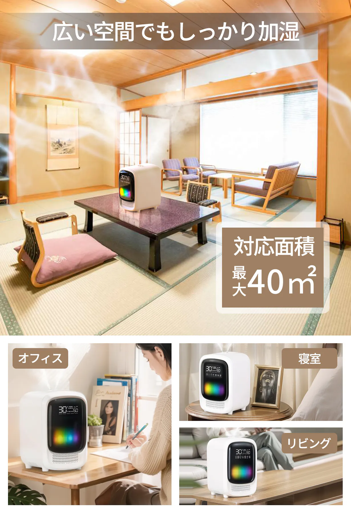 A:約20~40平方メートルの範囲をカバーできます。リビングルーム、寝室、オフィスなど様々な場所で効果的に使用できます。