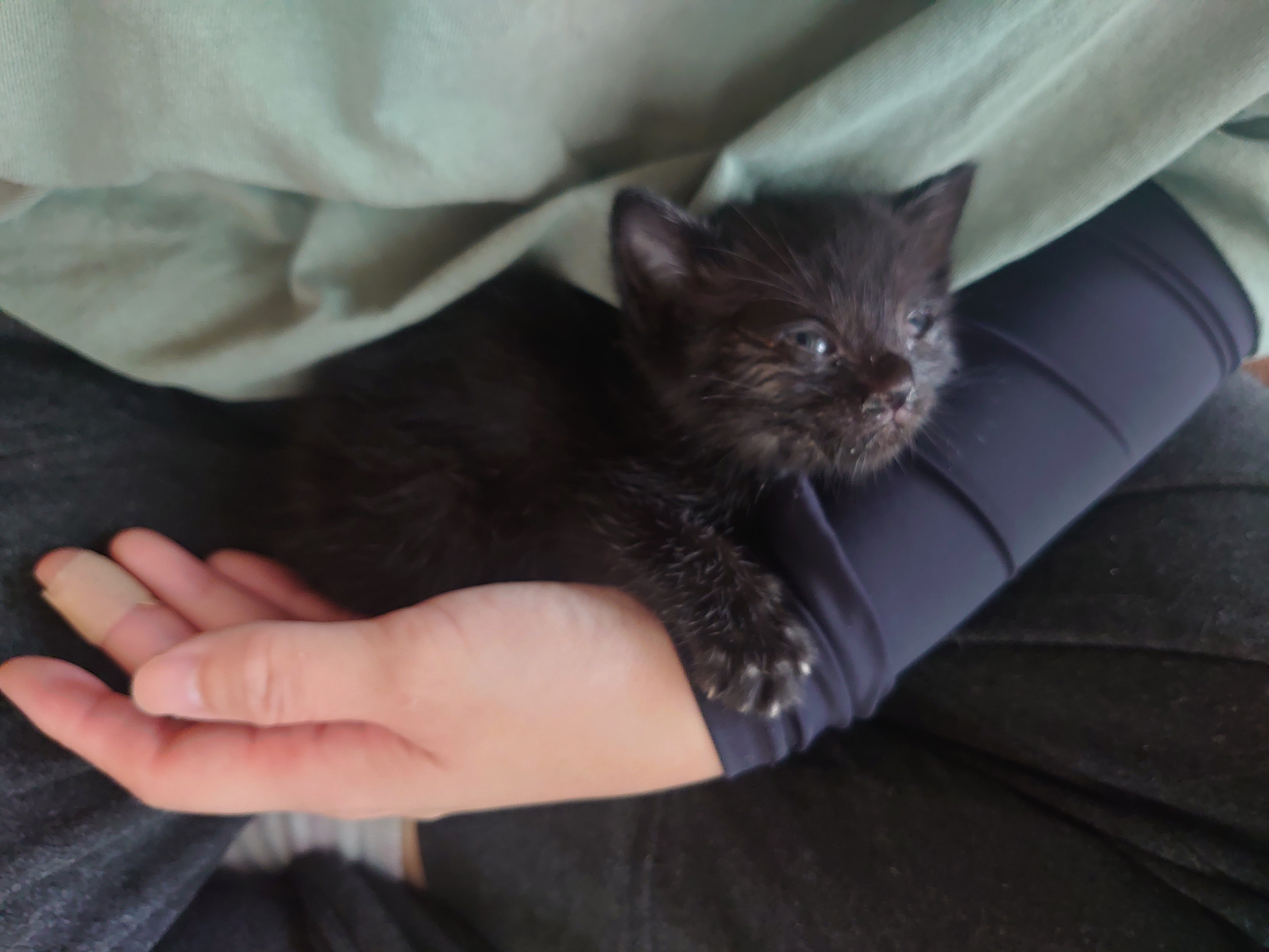 保護したときにはかなり状態が悪かったのですが毎日清拭、飲み薬と点眼、ブドウ糖をあげてなんとか頑張ってくれています。