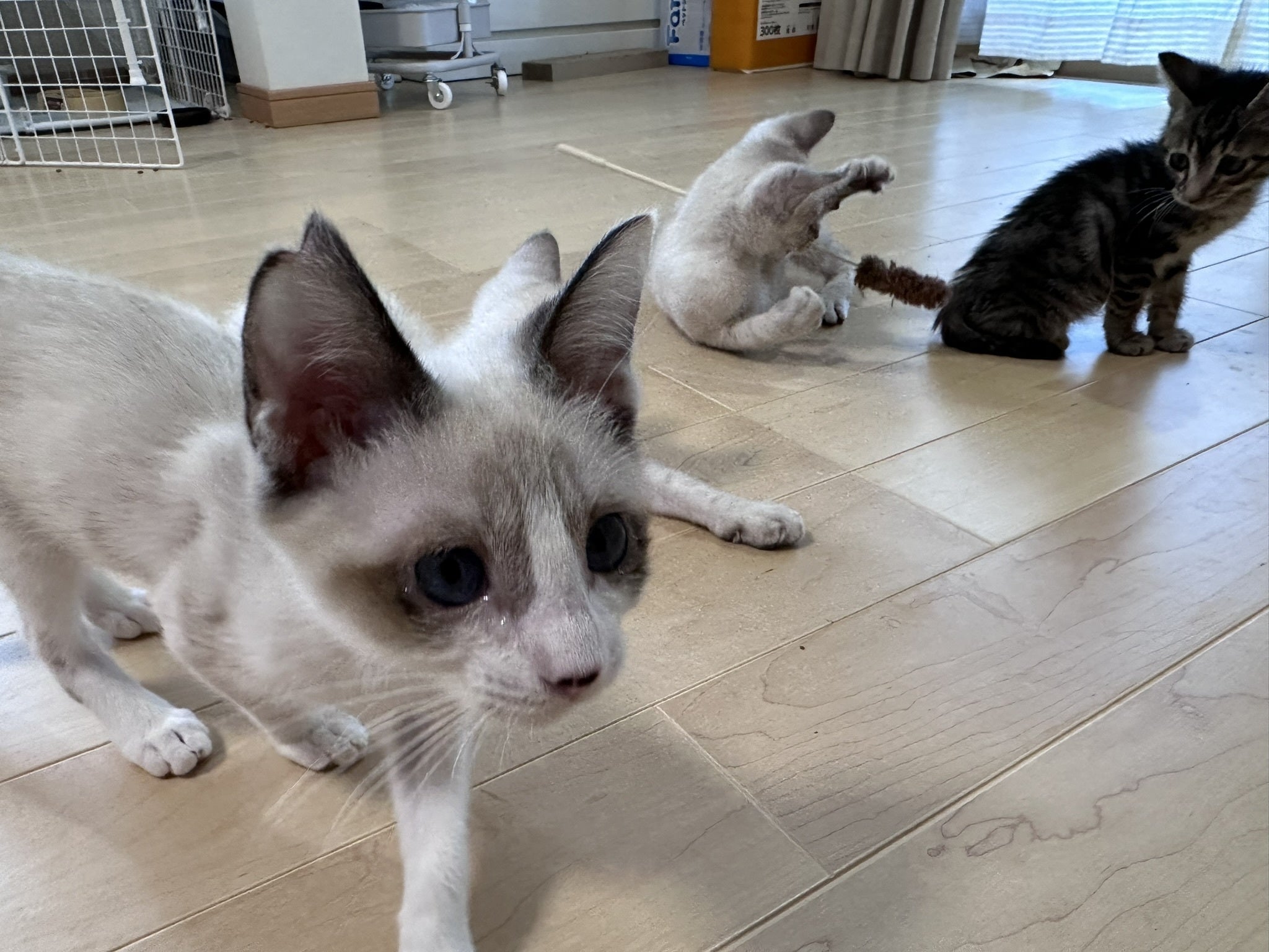 室内の子猫ちゃんはエアコンがついてる部屋で快適に過ごしていつものように走り回ってます!