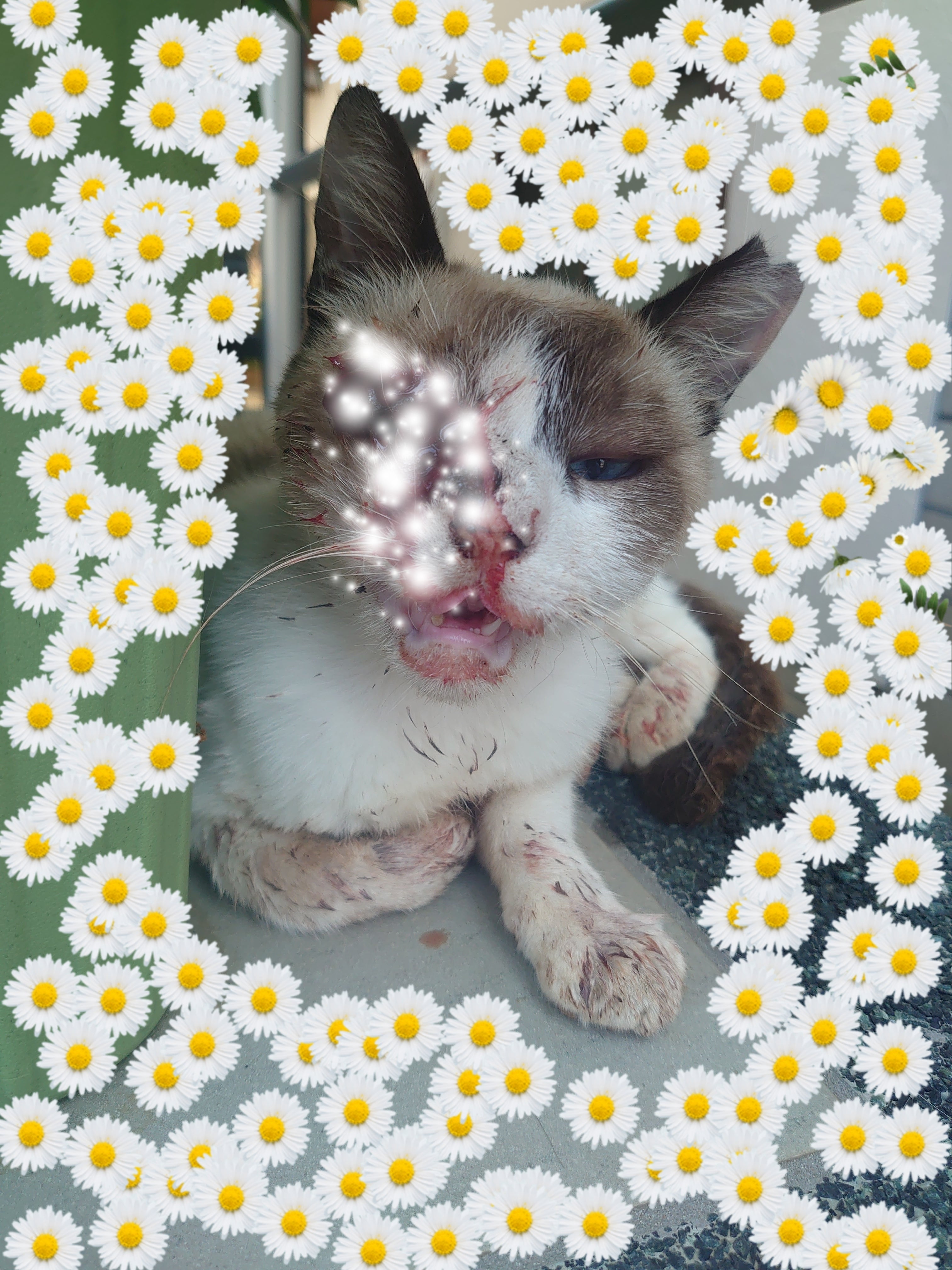 今朝10時頃、家を出るときに野良猫のハルちゃんの目の周辺から大量の出血があり病院へ連れていきました。