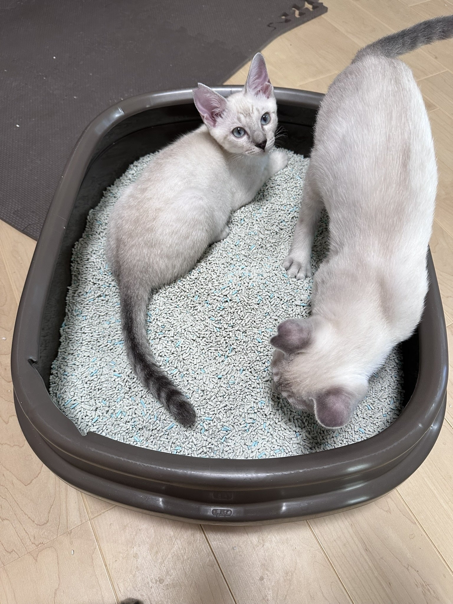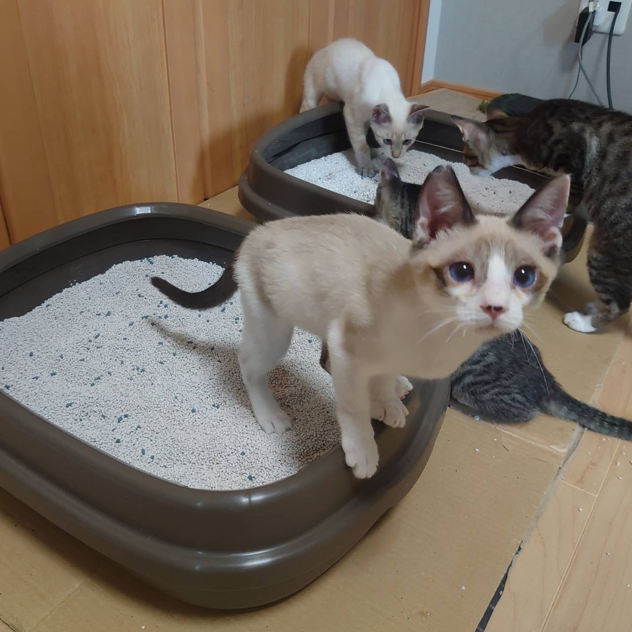 新しいトイレが届いたとき、猫ちゃんたちが集まってきて興味津々でチェックしていました。とても可愛い光景でした。皆さまの温かいご支援のおかげで、猫ちゃんたちがより快適に過ごせるようになりました。