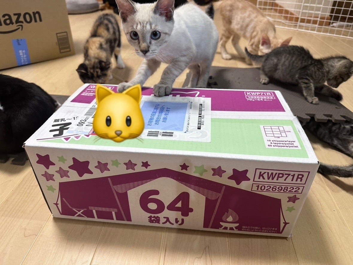 皆さまからご支援いただいた猫ちゃんたちのご飯、おやつ、そしてトイレが届きました!本当にありがとうございます。