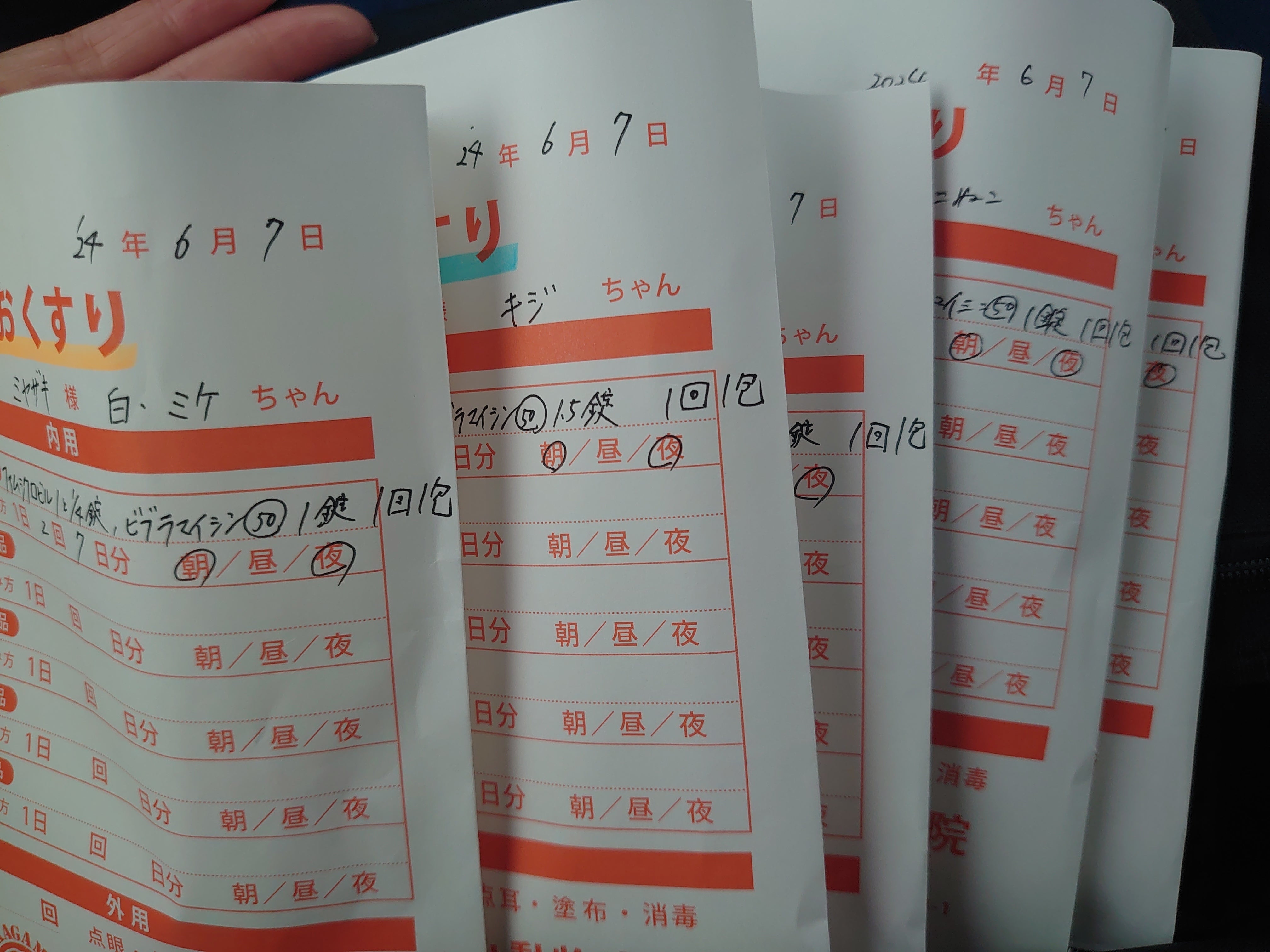 こんにちは。クラウドファンディングも今日で最終日となりました。ご支援の協力はもちろんのことプロジェクトを一緒に広めてくださった方々や活動報告を閲覧、メッセージをくださった皆様、本当にありがとうございます。残り僅かな時間ですが、お力添え頂けますと幸いです。本日は保護活動をされている方のご協力により、2匹の子猫さんたちを保護して頂いたので病院へ連れて行ってもらいました。その後、私が気になっていた状態が悪い子達を4匹連れていきました。体重がみんな違うのでそれぞれのお薬です。笑これから他に保護している子猫たちと合わせて10匹を集中ケアしていきます。本日も閲覧ありがとうございました。