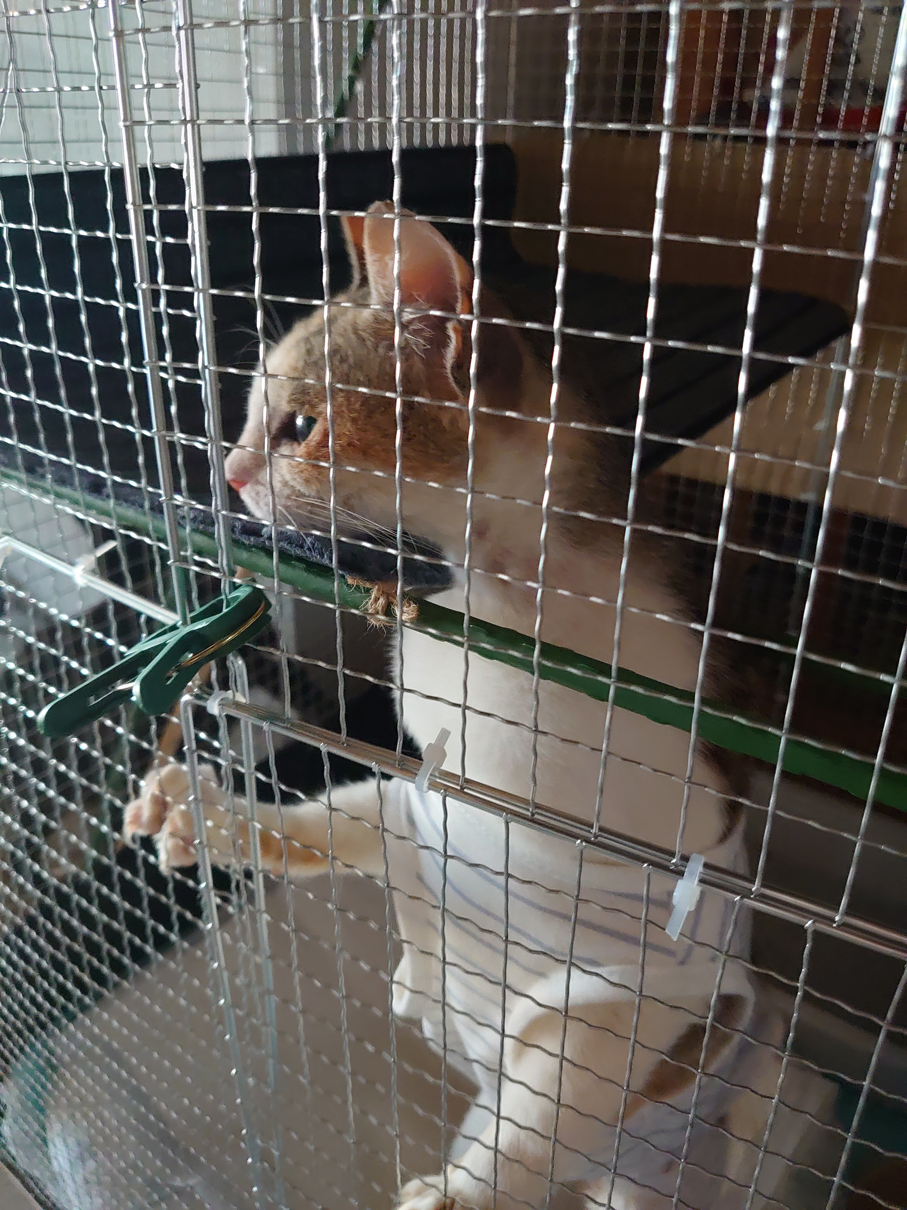 こんばんは。昨日避妊手術を終えた子が無事帰ってきました(T_T)耳カットもされてます。知らないところで1人でよく頑張ったなと思います。しばらくは様子が心配なのでケージに入れて様子を見ようと思うのですが、野良猫さんなので動き回りたいのかケージの中に入れてもジャンプして落ち着きません。傷口開かないか心配です。明日は3匹を手術へお願いする予定です。皆様のご支援本当にありがとうございます。引き続きご協力よろしくお願い致します。