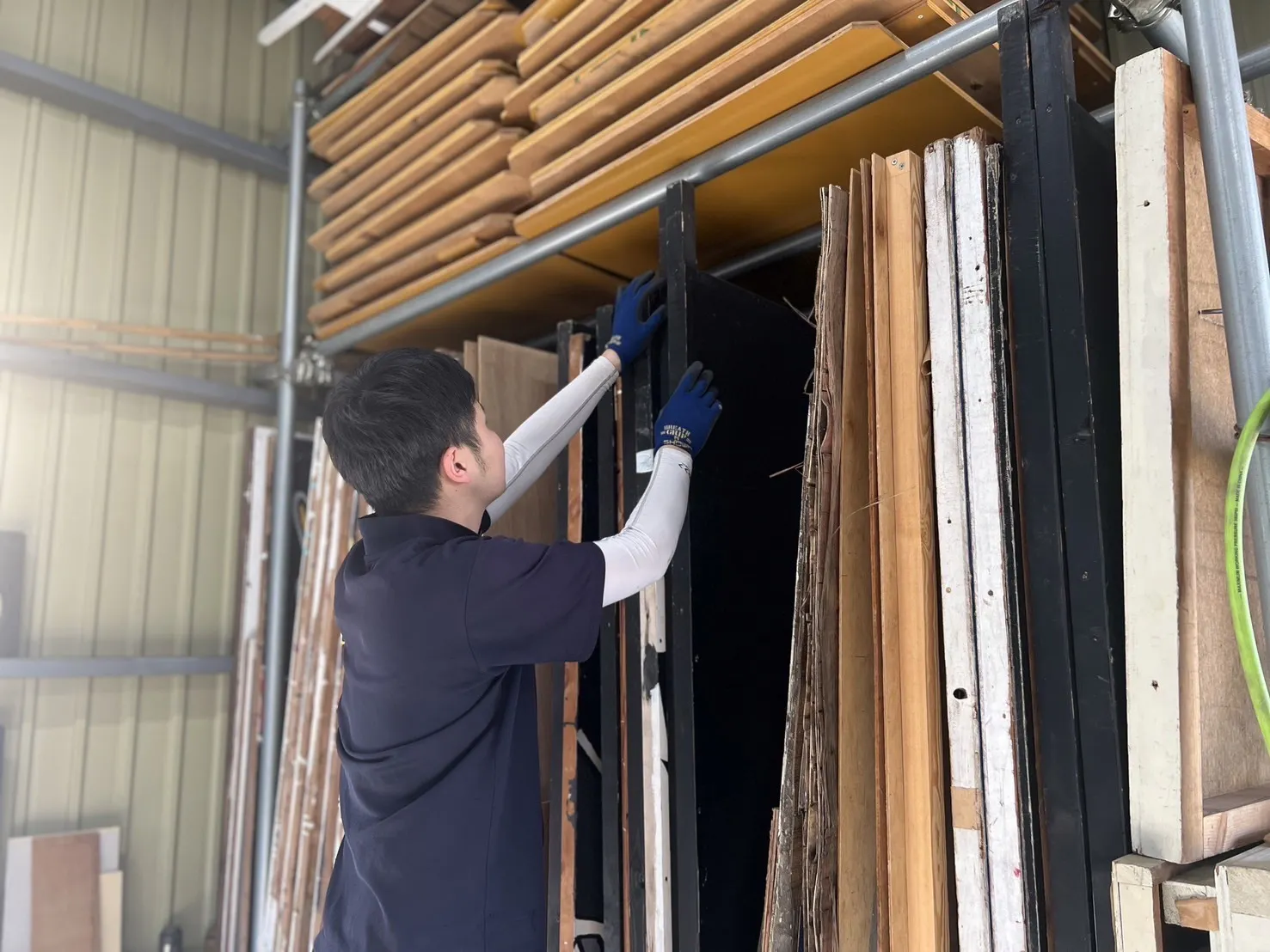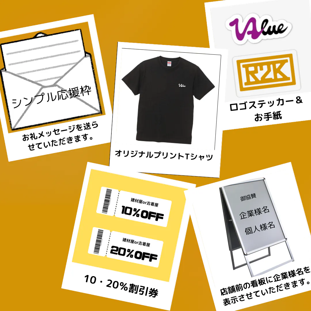 また現職の現場監督を行いながら古着の買取・オンラインストアでの販売をおこなっております。古着の買取・オンラインストアを始めたきっかけは、身の回りで毎日膨大な量の衣料が廃棄されていることを知ったからです。その中にはまだまで着られる衣料がたくさんあり、この衣類に新しい価値を付けられないか模索をしている際に、その衣料を直接回収し、検品・清掃・リペアを行うことで付加価値を付け販売することができると考えました。古着に新しい価値を付けるというところから、古着屋の名称を【Value】(日本語訳:価値)にしました。現職の現場監督を退職し、異業種を組み合わせたリユース会社を立ち上げ、建材屋兼古着屋として新しくスタートしようと思いました。建材と古着の関係性は一見ないように感じますが、私たちは同じ環境化の関係性の深い廃棄物の問題に着目しており、この問題を解決するためこれらの事業を進めていきたいと思っております。建材を購入されるお客様には古着に触れていただき、古着を購入されるお客様には建材に触れていただき、日本初の地球にやさしい建材屋兼古着屋をオープンさせたいと考えています。