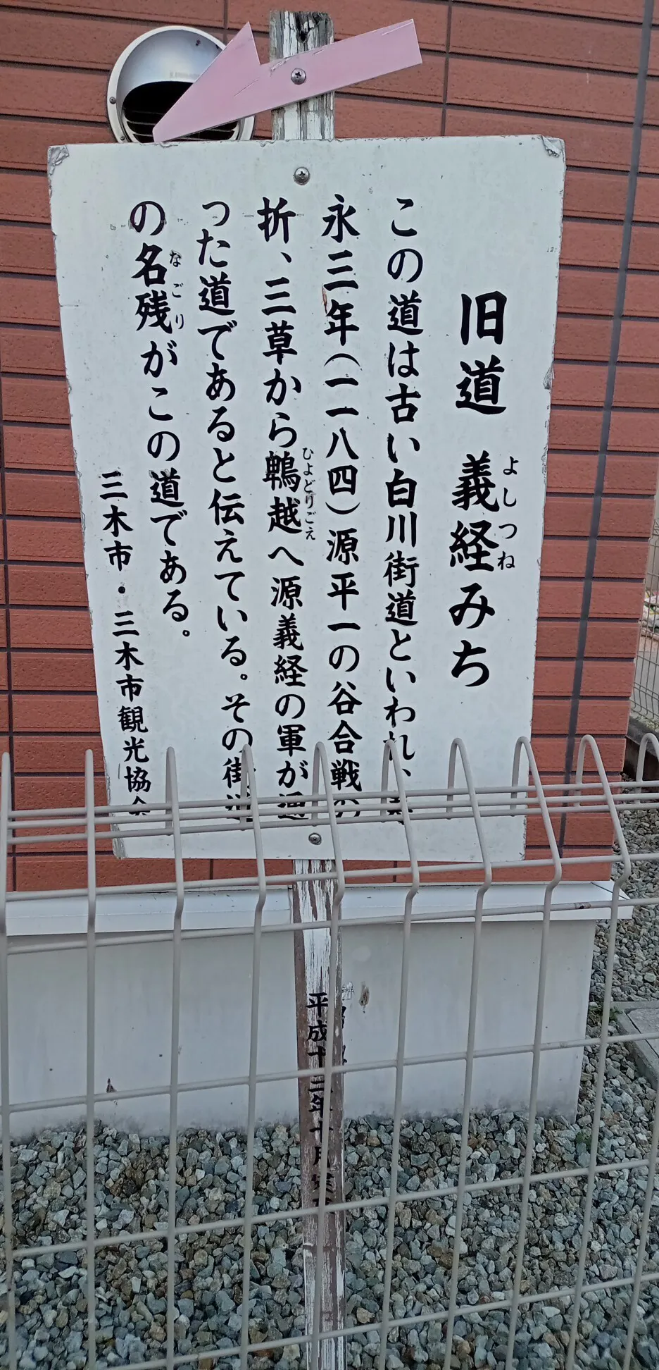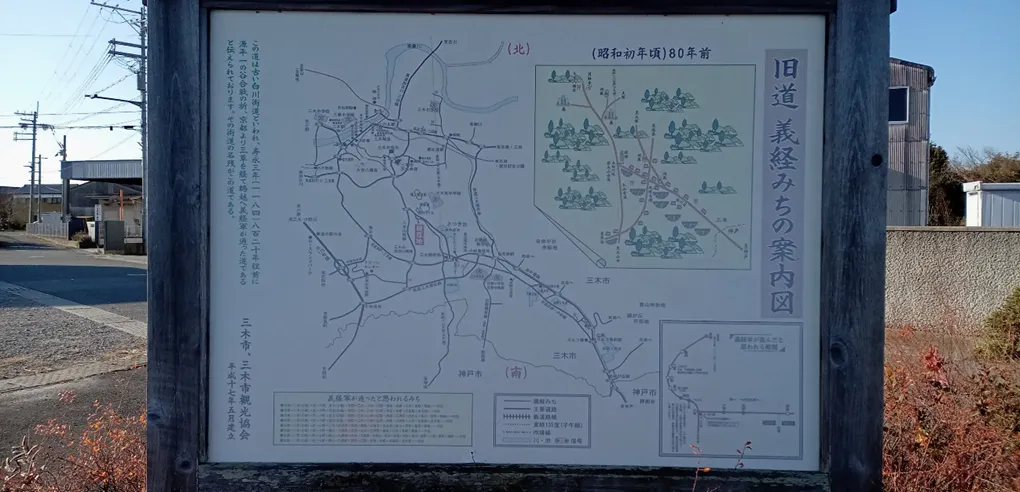 義経がたどった道の看板が有ります・三木市別所町小林地区。