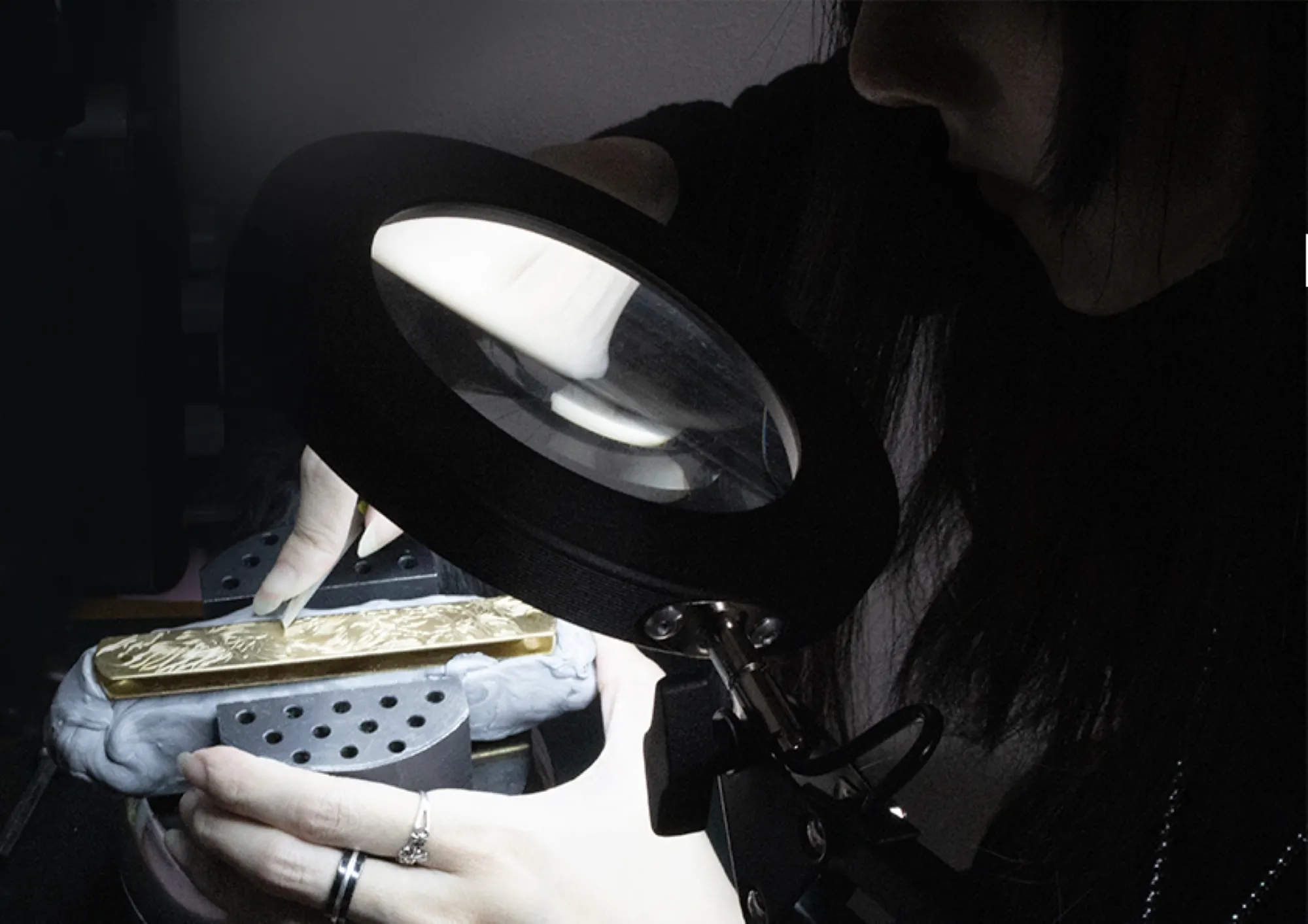 彫金中の「血ゑ」さん 彫金中の動画を