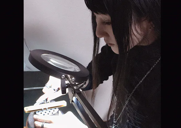 五代目と私の夢だった彫金を五代目の従妹のデザイナーの血ゑさんが彫金師としてデビュー