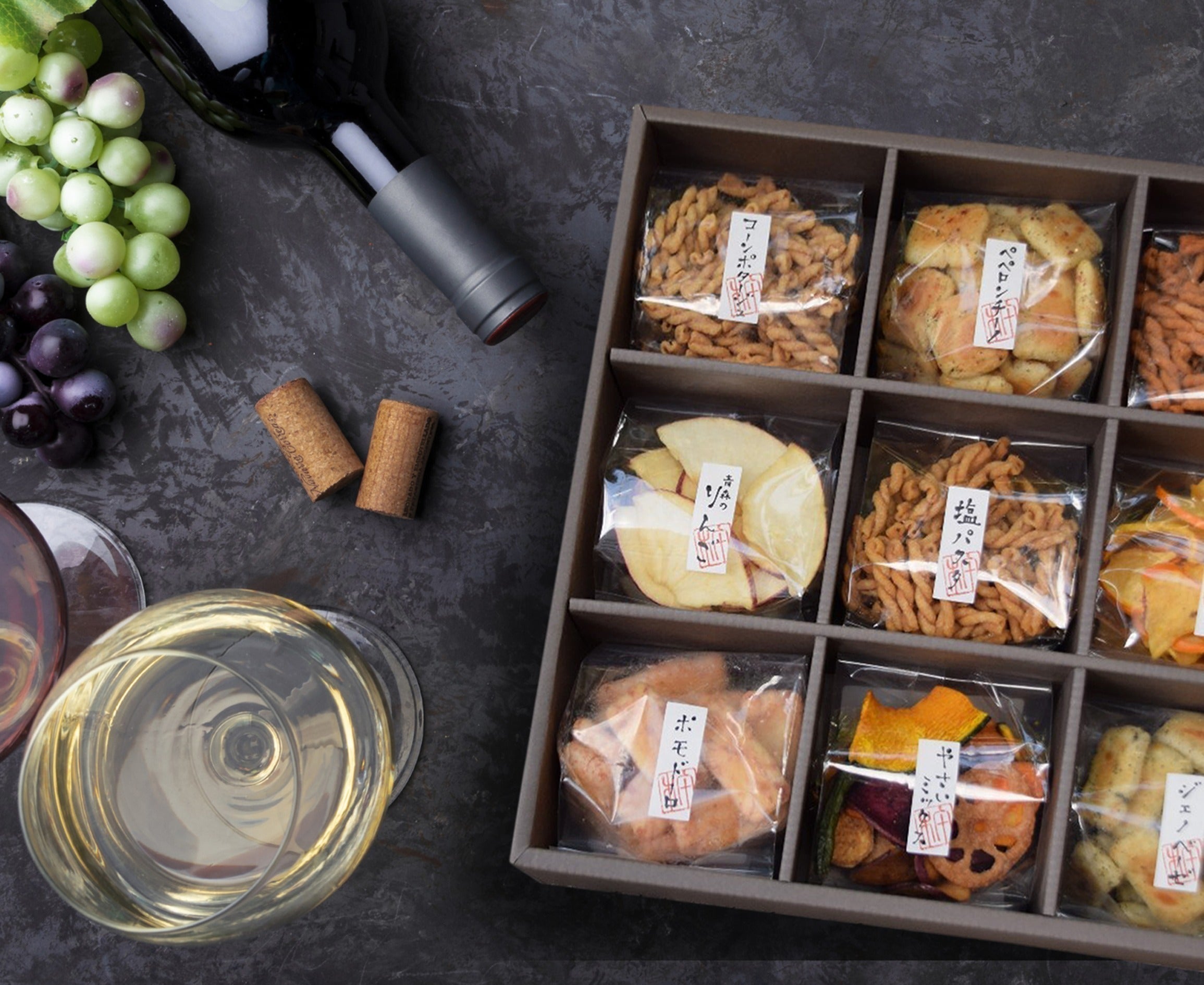 一般的なミディアムボディのワインと特に相性が良く、程よいコクのものやチーズ味の商品をご用意いたしました。