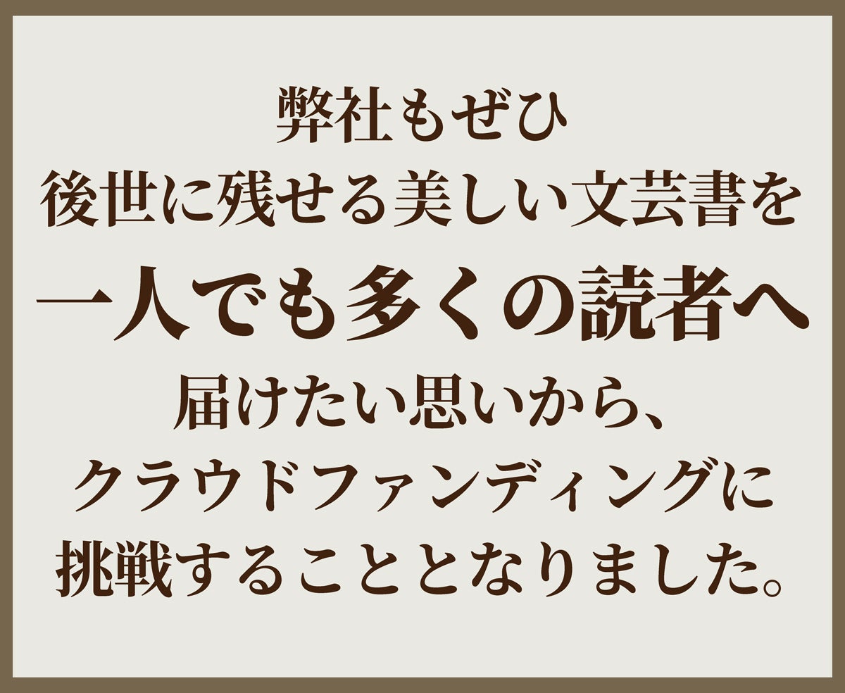 今回弊社が、クラウドファンディングという新しい形で出版プロジェクトに取り組んでいるのは、老舗出版社として出版界に温故知新を実現するための挑戦です。