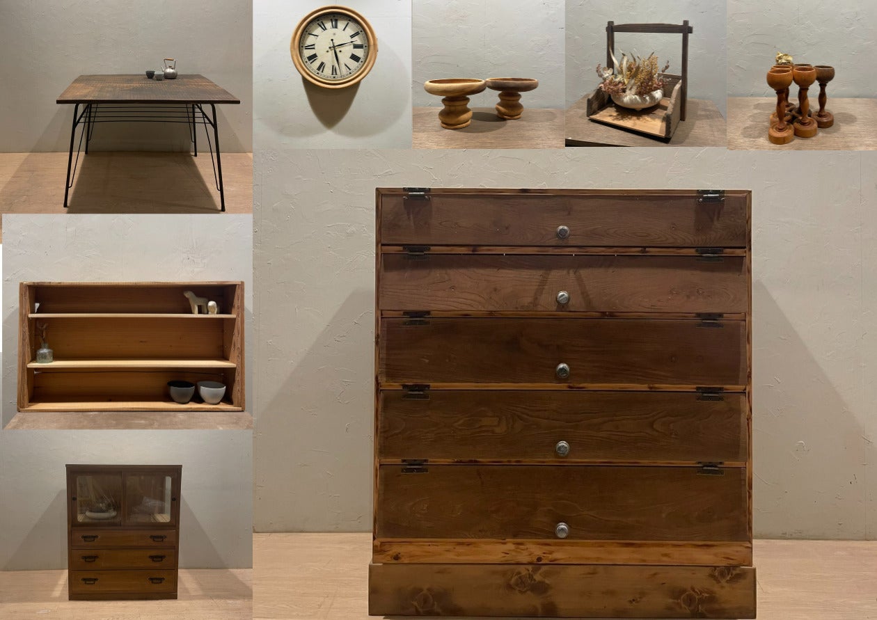 オーダー家具製作を進めていく中で、お客様から不要となった家具の処分を頼まれたりご自宅や実家等の片付け依頼が仕事として発生することもあり、その流れからまだ使えるモノ、部品として使用できるモノなどをリメイクし少しずつ店舗へ反映させていきました