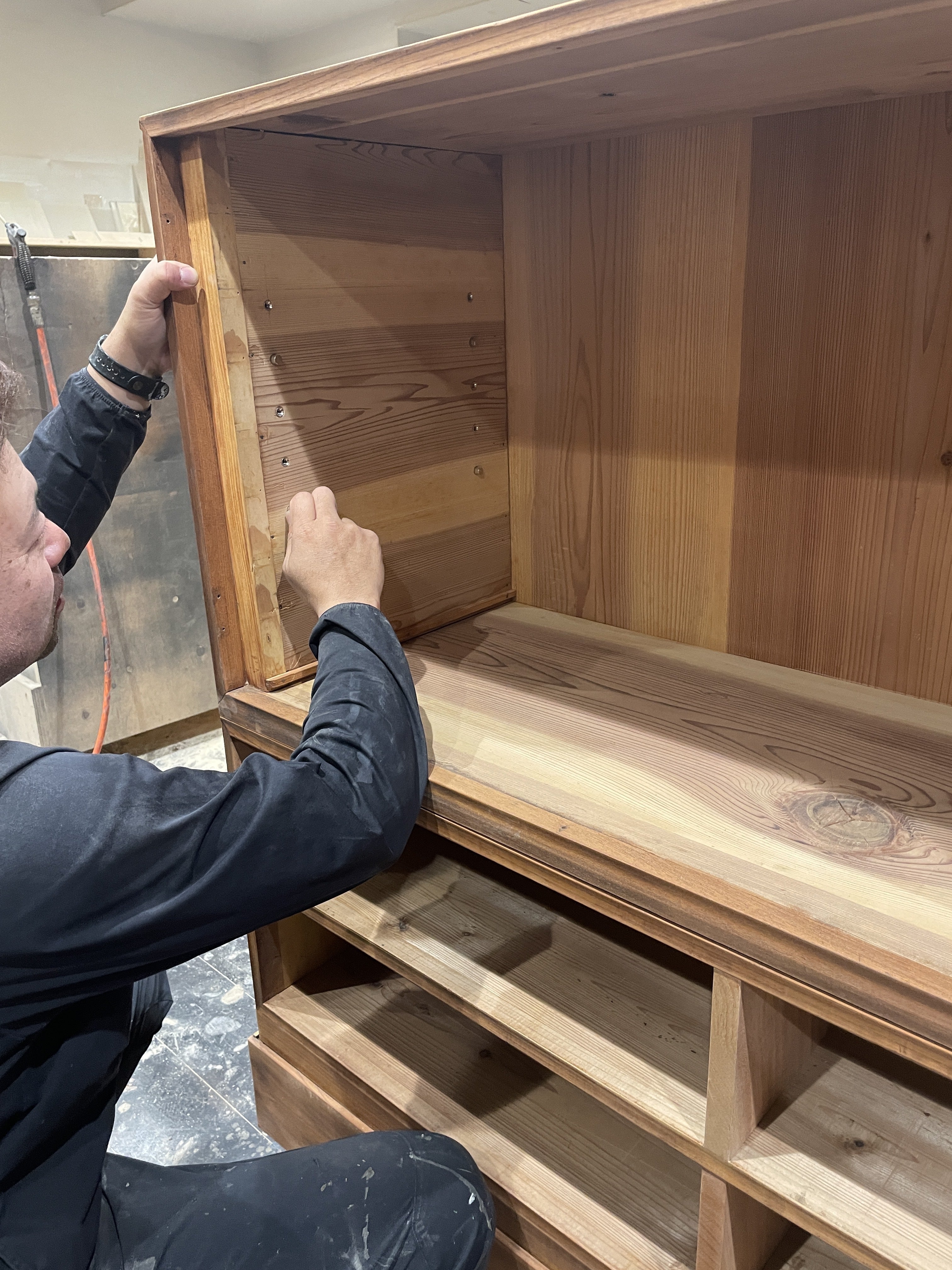 日々、オーダーの仕事も受けつつ古家具の引き取り、修理などに全力を注いでおります