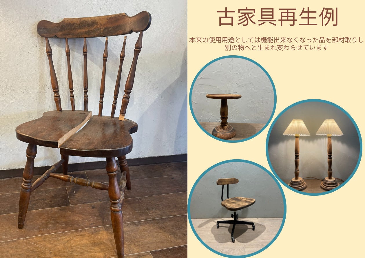 ボロボロでその状態のままではリメイクの難しいものでも部材・部品となり小物や他家具への移植などに形を変え販売しています