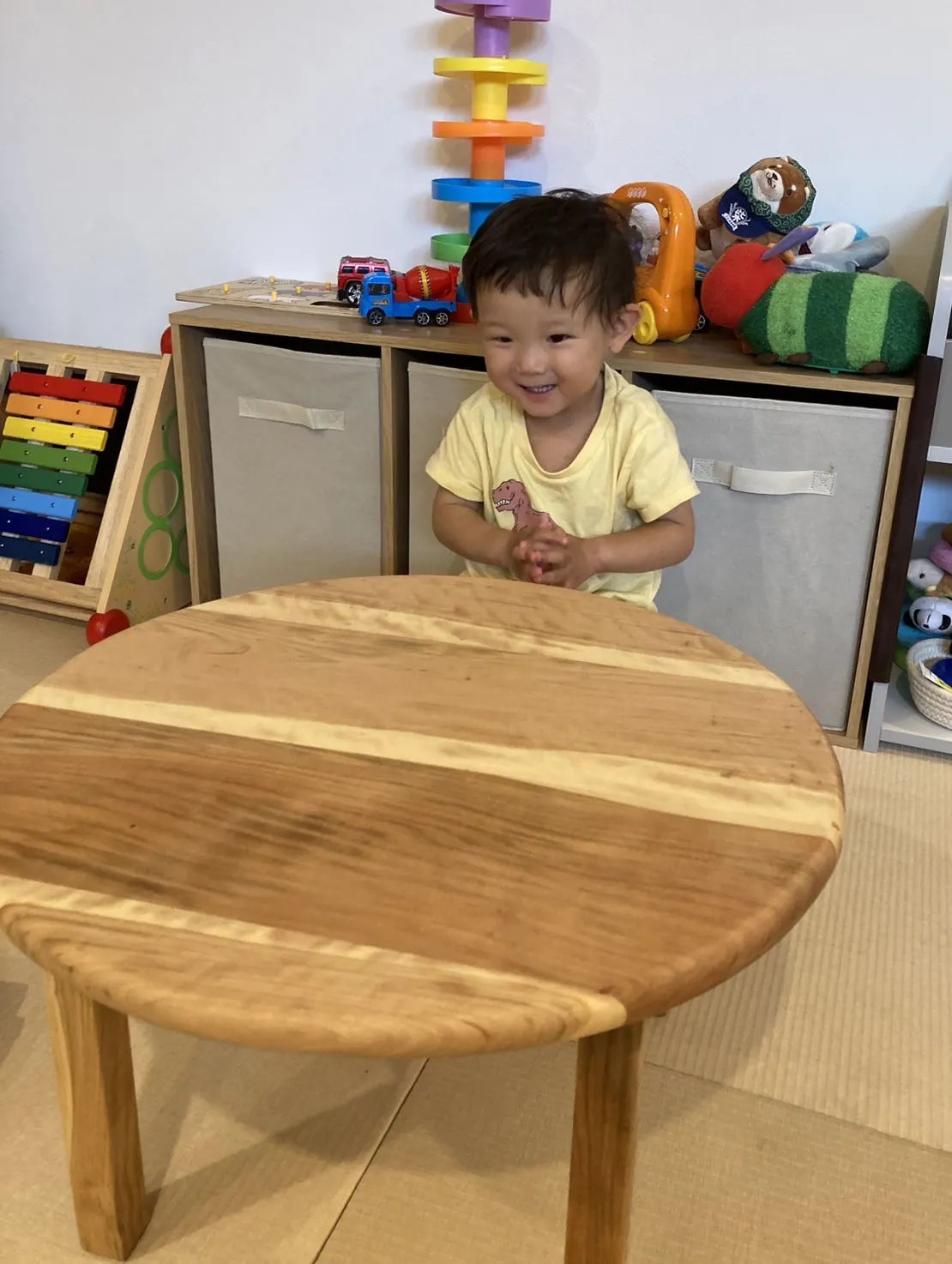 『ちゃぶ台を見た瞬間大喜びで、手で木肌を触り離れませんでした