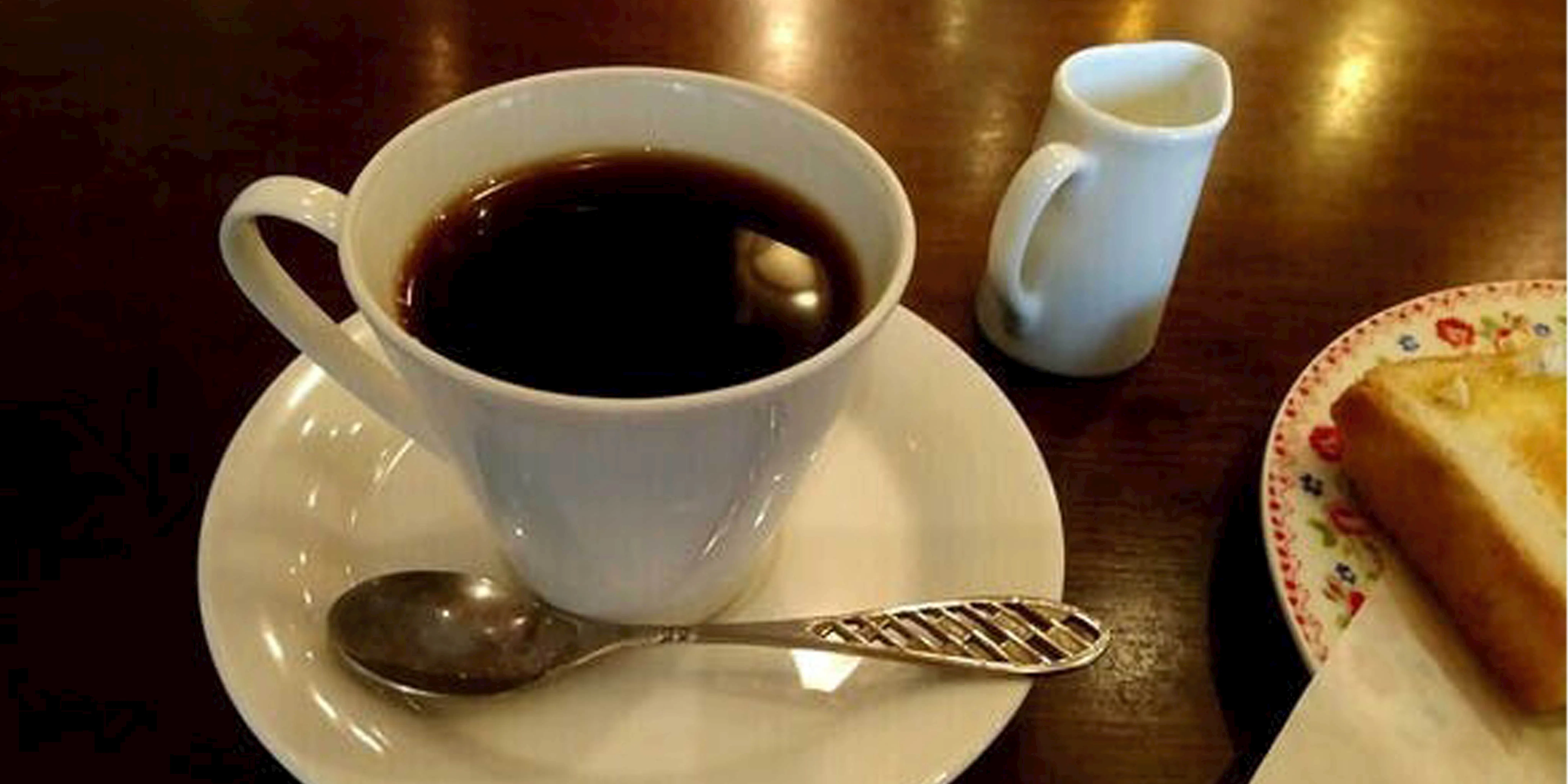 珈琲は近所の珈琲豆卸店で焙煎したての物を厳選し、注文がある度にグラインドして挽きたての珈琲を机までお届けします。