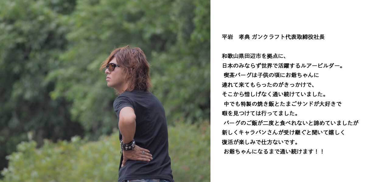 平川太一として、心よりご支援をお願い申し上げますと共に一緒に喫茶「バーグ」改めニュー喫茶「キャラバン」の新たな章を開いていきませんか。