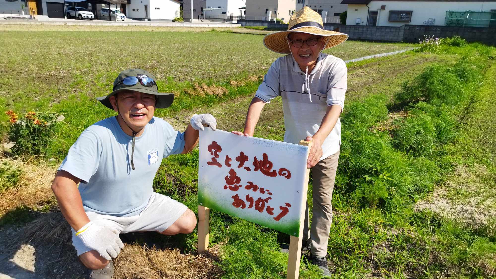 今回、畑を持ってて、youtuberでもある鵜川さんの畑に池田の看板を立てました。