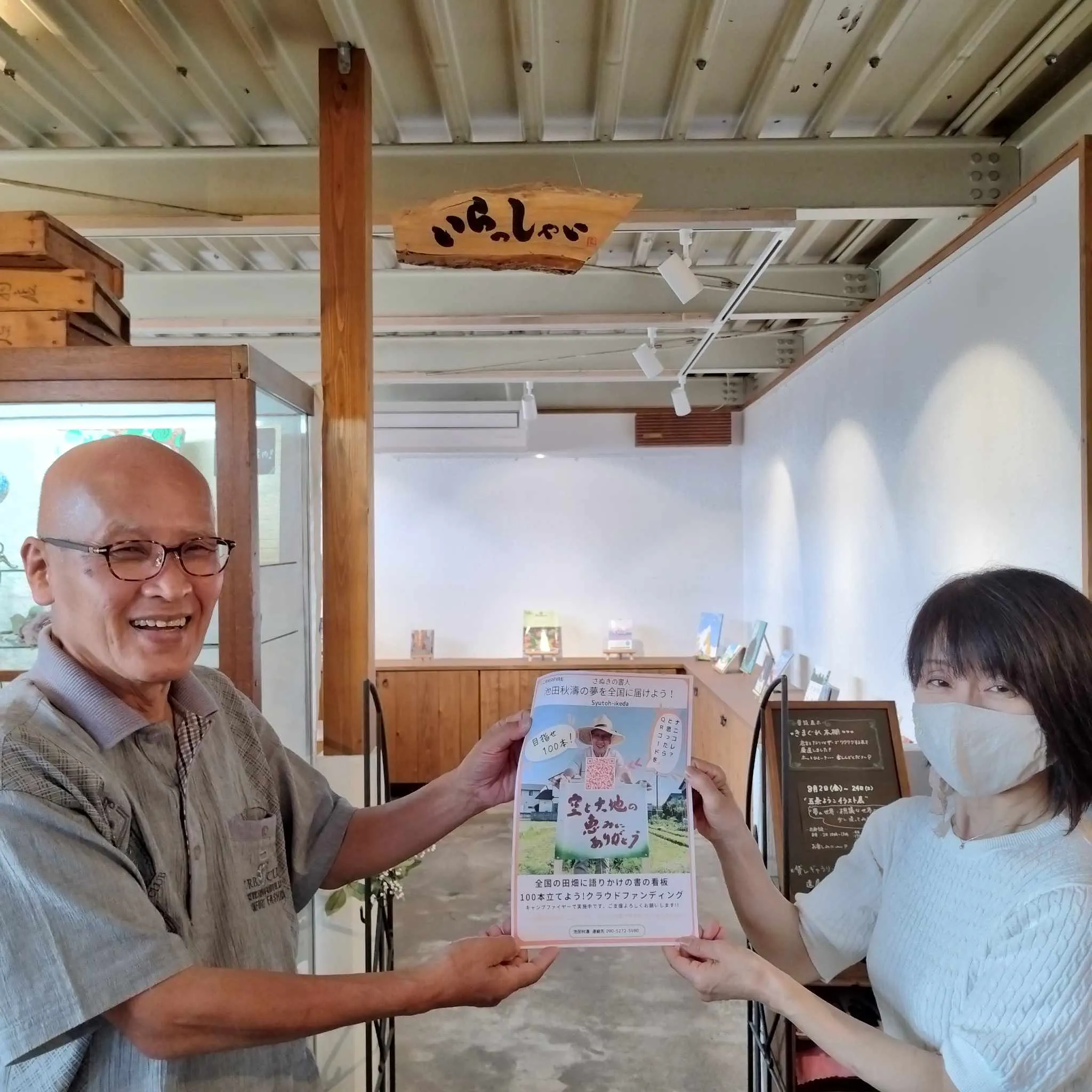 カフェ&ギャラリー 遊美salon 植松商店さまにクラウドファンディングのチラシを置いていただきました。