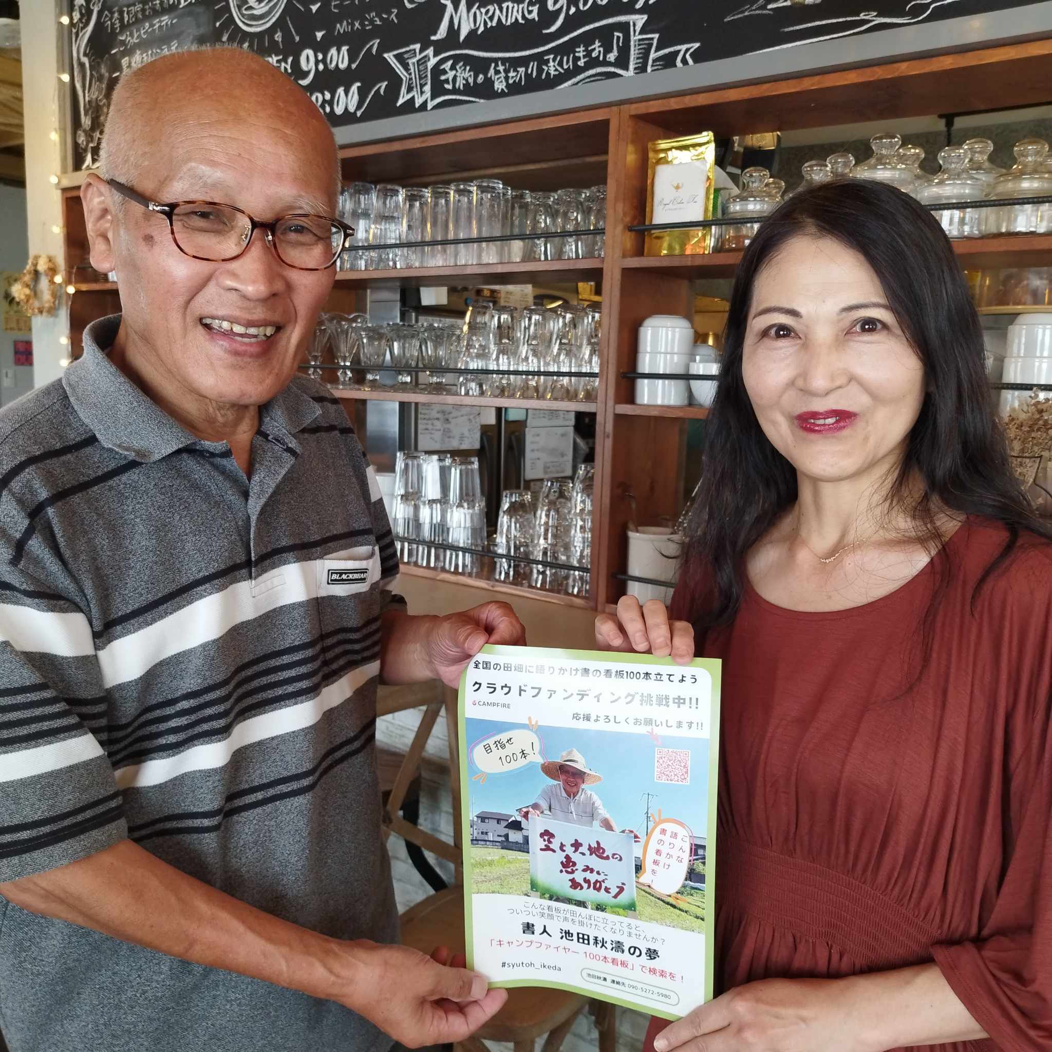 「73歳書人の夢!全国の田畑に『語りかけ書の看板』100本立てて農家さんと地域を笑顔に!のチラシを置いてもいいよ!て方を大募集しています。