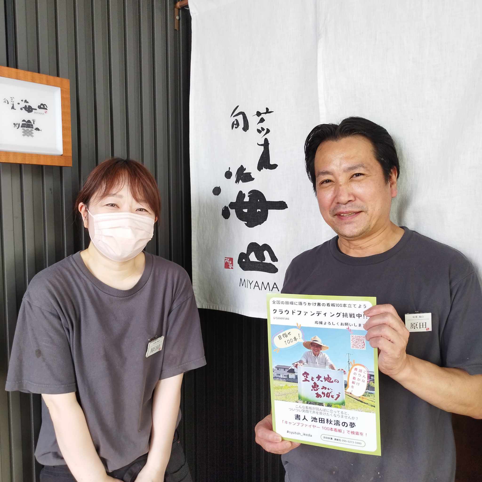 以前、店の名前「海山」を看板に書いてほしいと依頼があり書かせていただいたお店