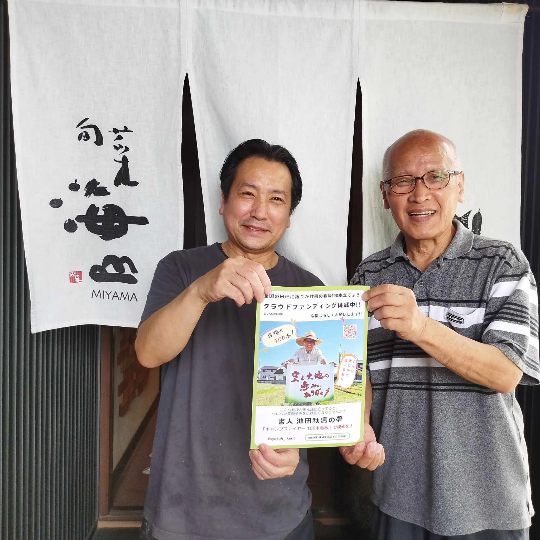 「73歳書人の夢!全国の田畑に『語りかけ書の看板』100本立てて農家さんと地域を笑顔に!のチラシを置いてもいいよ!て方を大募集しています。