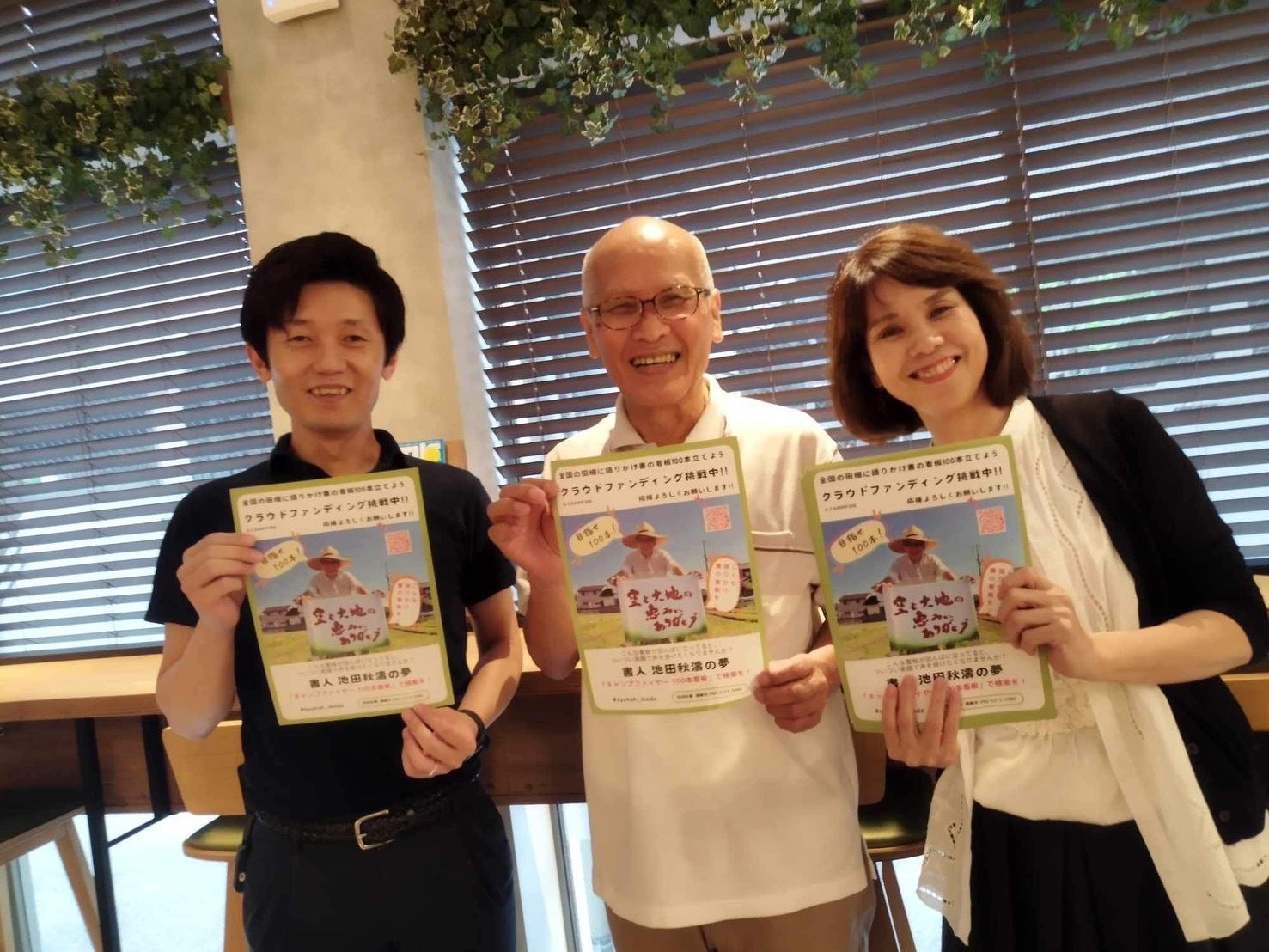 「73歳書人の夢!全国の田畑に『語りかけ書の看板』100本立てて農家さんと地域を笑顔に!のチラシを置いてもいいよ!て方を大募集しています。