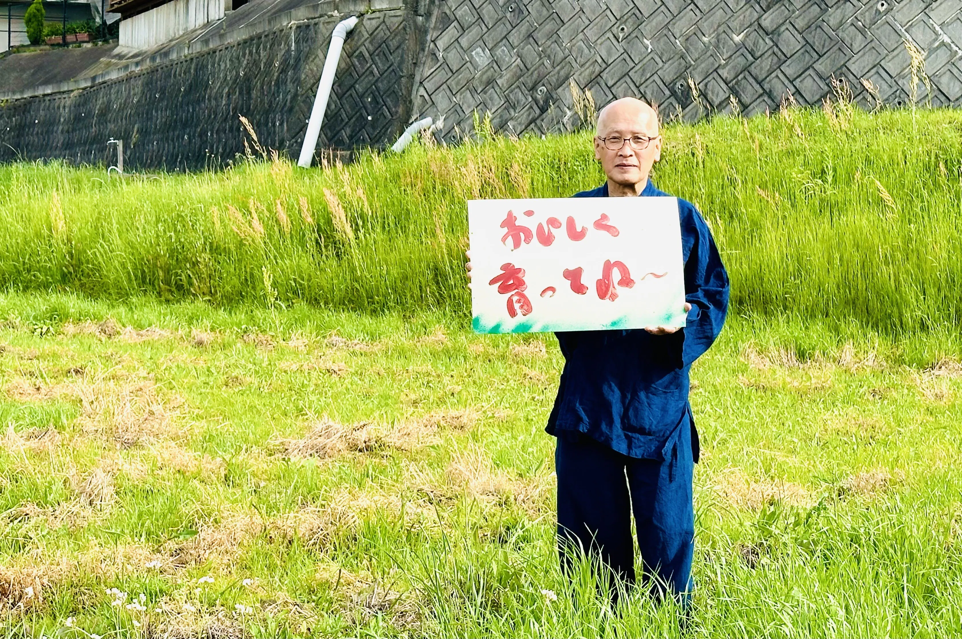 73歳書人の夢!田畑に語りかけ書の看板