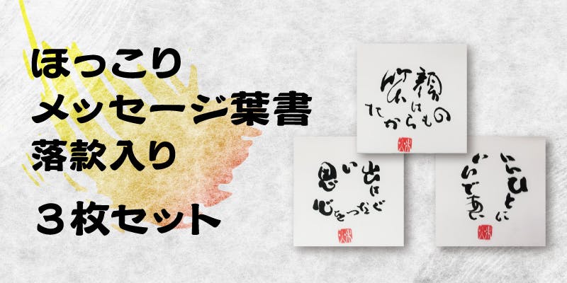 一枚、一枚、池田秋濤の心に残る言葉をポストカードに描きました。「思い出は心をつなぐ」「笑顔はたからもの」「いいひとにいいであい」大切な人へのお便りに。お家で額に入れて飾っていただいても。メッセージを見てほっこり気分になってください。ほっこりメッセージ葉書 落款入り 3枚セット 5,000円※池田のクラウドファンディング挑戦チラシ「73歳書人の夢!全国の田畑に『語りかけ書の看板』100本立てて農家さんと地域を笑顔に!のチラシを置いてもいいよ!て方を大募集しています。ぜひぜひ!お声がけください。ご協力よろしくお願いします。