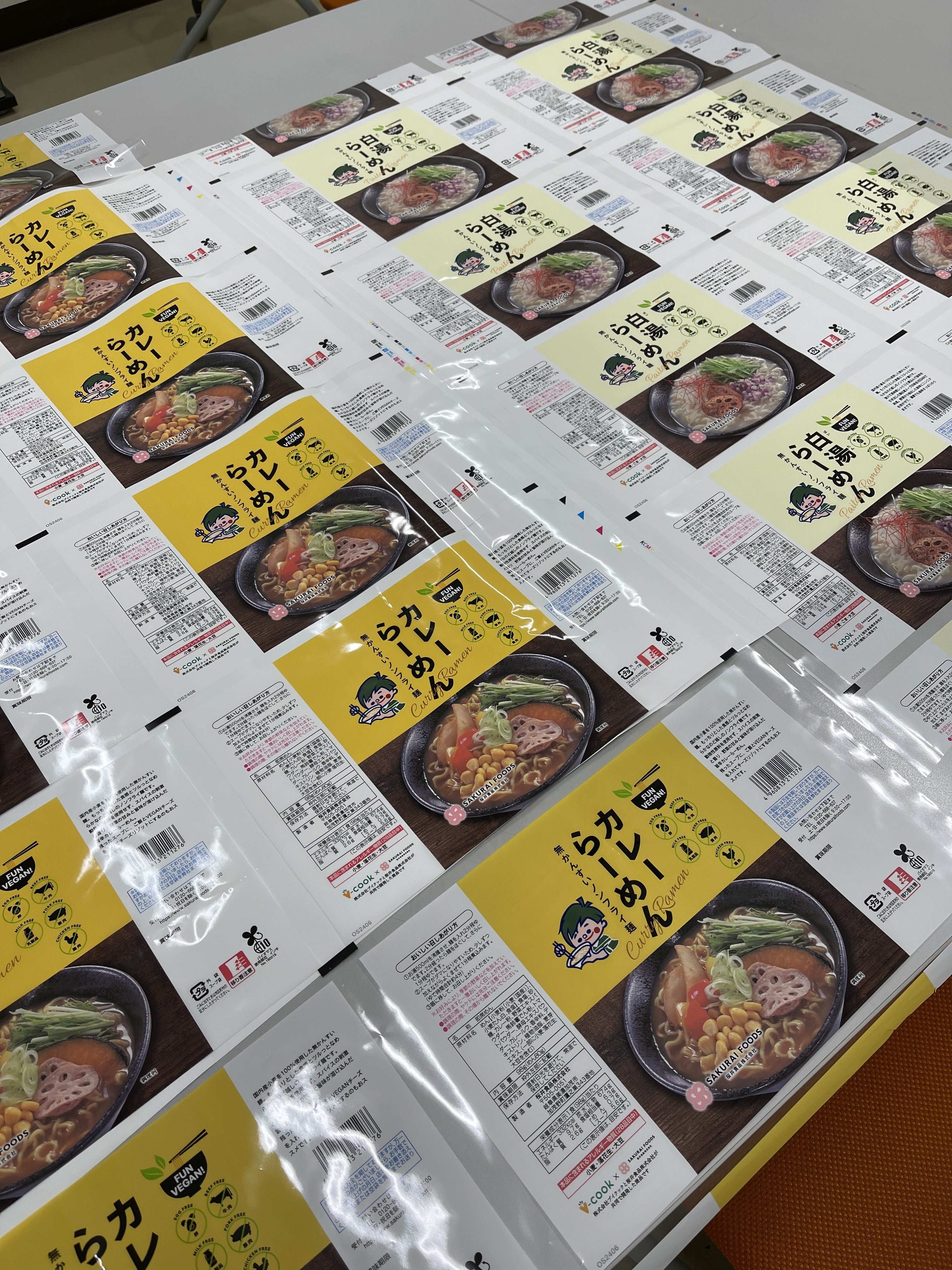 VEGANらーめん2品のフィルム印刷が始まりました!本日、印刷立ち合いをして調理例の色合いや全体の色目などの確認をしてきました。実物で確認してきましたが、とっても素敵な仕上がりになっています。引き続き、少しでも早く皆様の所へお届け出来るように頑張ります!桜井食品株式会社