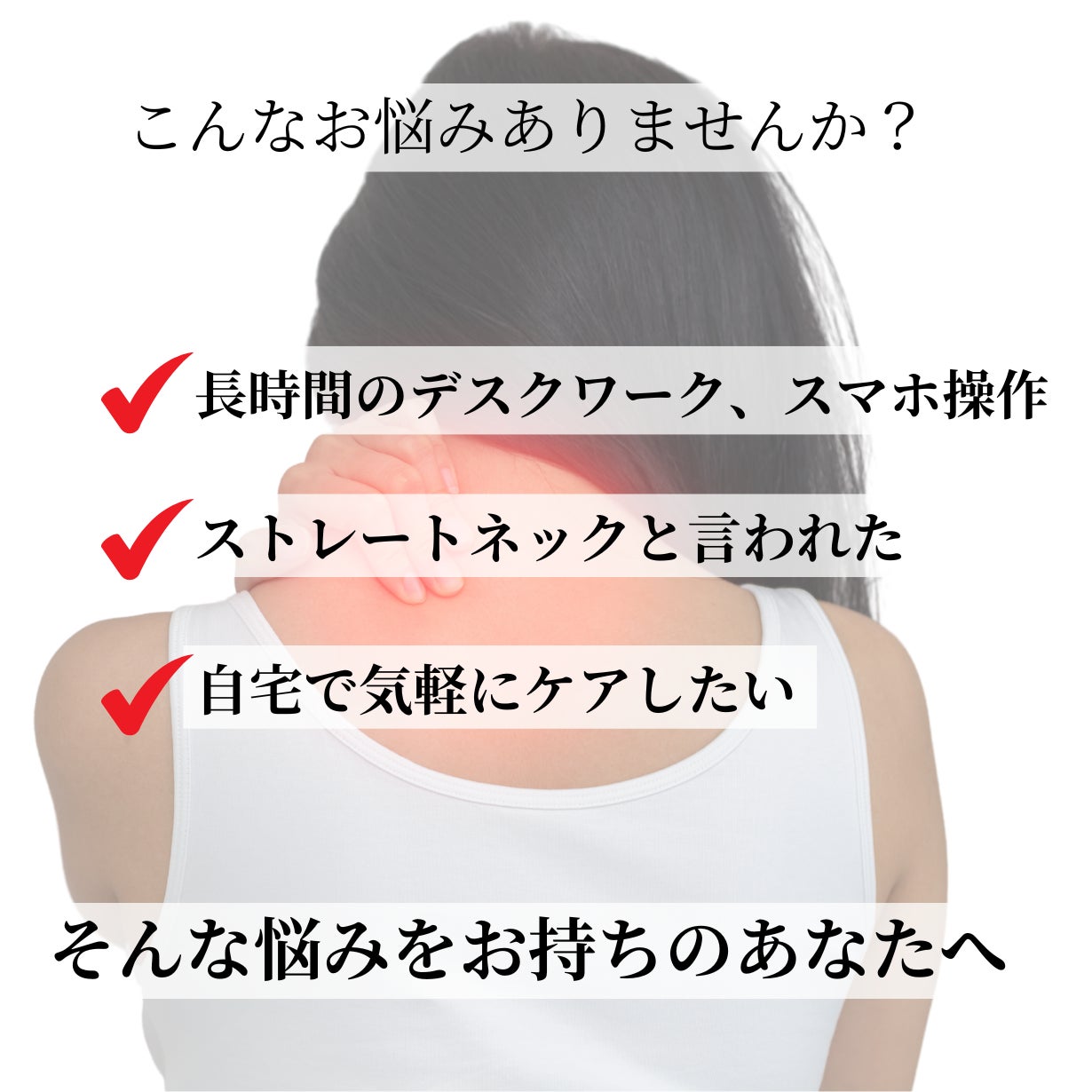スマホ操作、PC作業で駆使した現代人の首に優しくアプローチ。