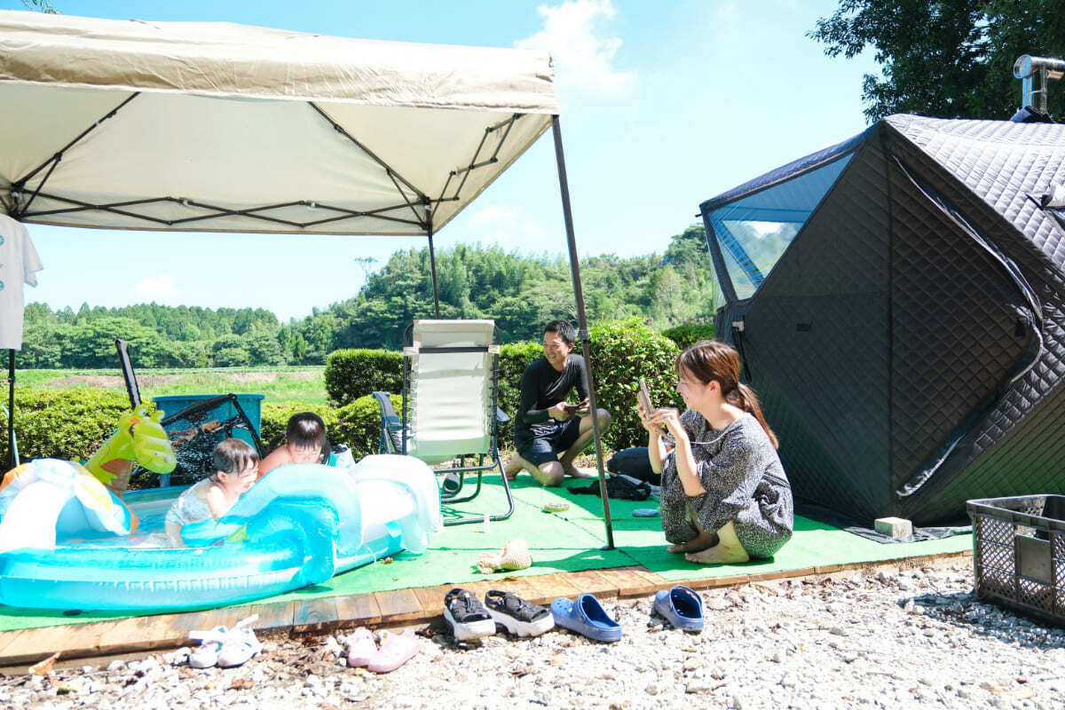 茶臼原ひみつのサウナは、宮崎県西都市茶臼原(ちゃうすばる)に位置し、田舎の大自然の中セルフロウリュのテントサウナやドラム缶風呂などを楽しめる、貸切型の「自由」がテーマのアウトドアサウナです。