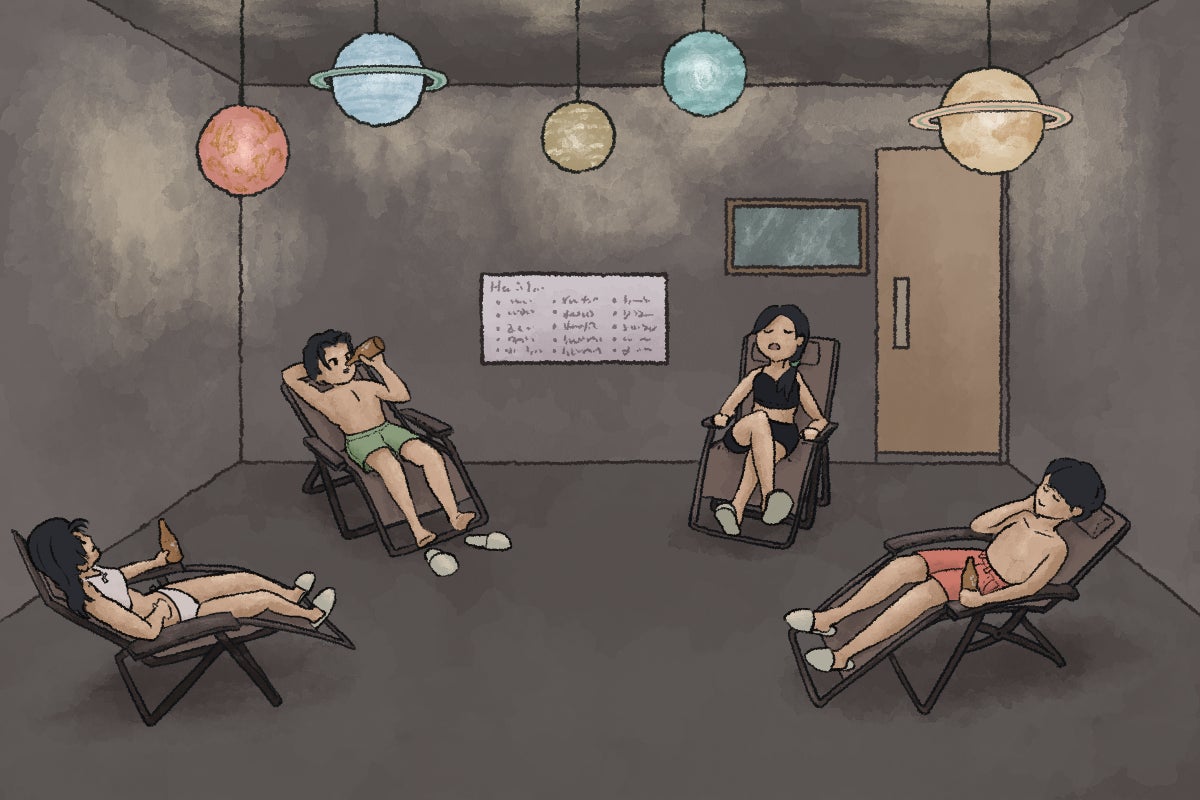 内気浴場 内壁には、これまでの丸山の宇宙知識を生かしたデザインを施す予定。宇宙のロマンを体感しながら休憩してください。
