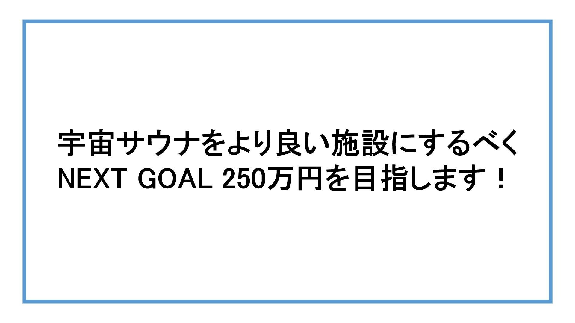 クラウドファンディングは8月13日まで続きます。つきましては、宇宙サウナをより良い施設にするため NEXT GOAL 250万円 を目指します!