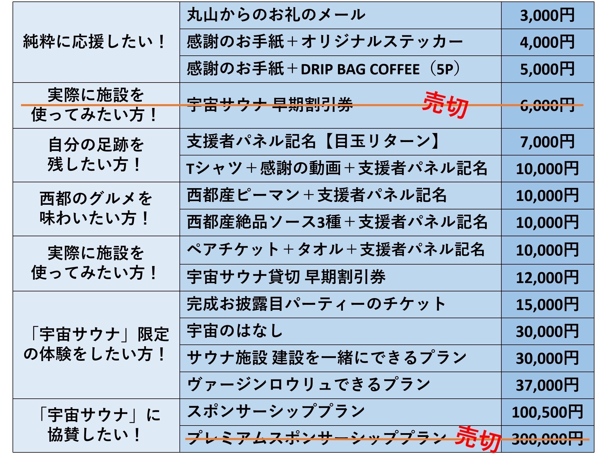 より快適で、さらにワクワクする体験を提供するために、前人未到の宇宙サウナ施設の完成に向け、皆様のご支援を心よりお願い申し上げます。