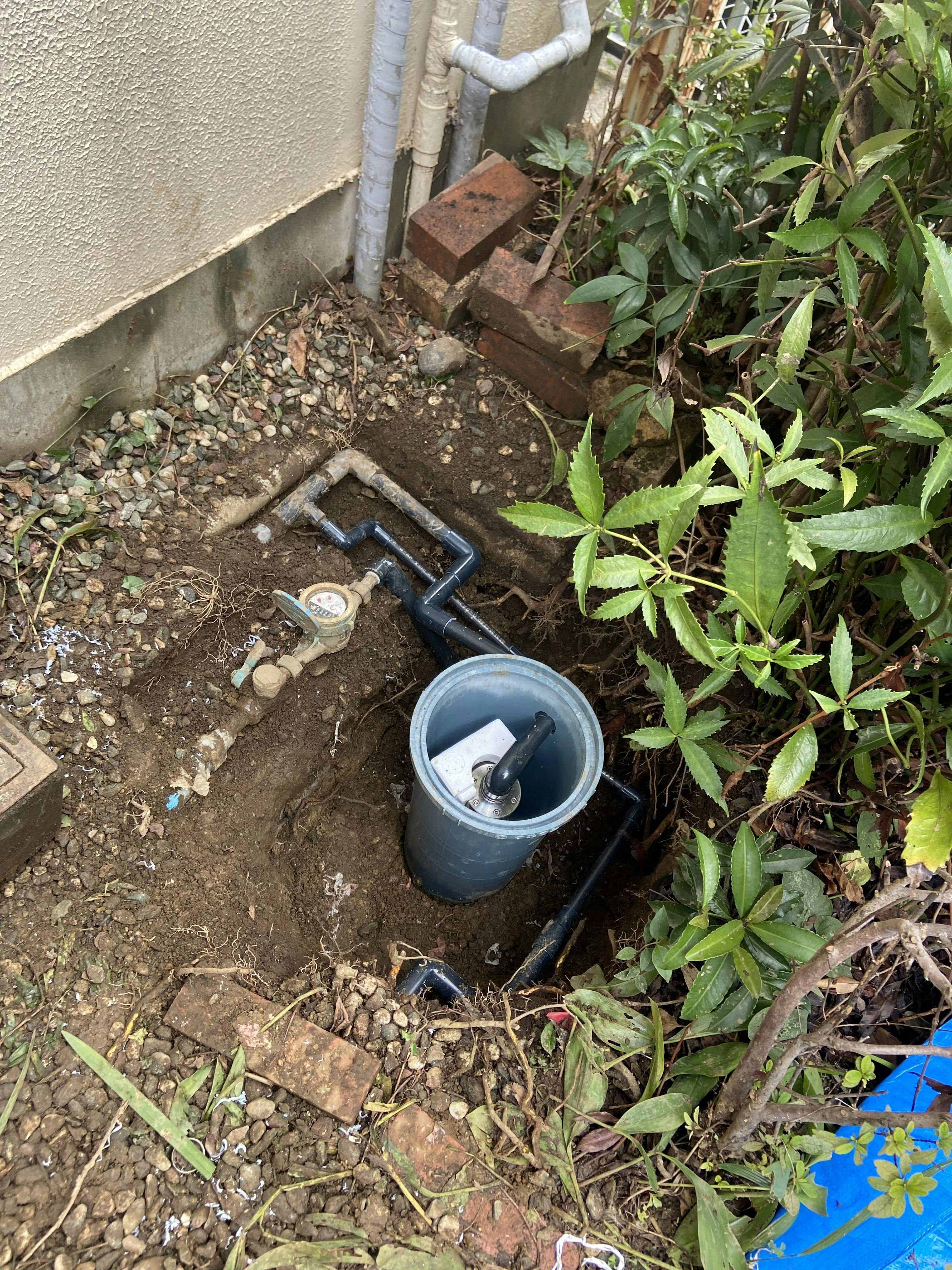 こちらのアパートのオーナーさんは老朽化対策にエミール4台設置されてます。今は人にお貸ししておりますが、ご自分が生まれ育った大切なお家だそうです。水道メーター脇を掘りましてそこに垂直に設置して接続しております。長持ち貢献させていただきます。