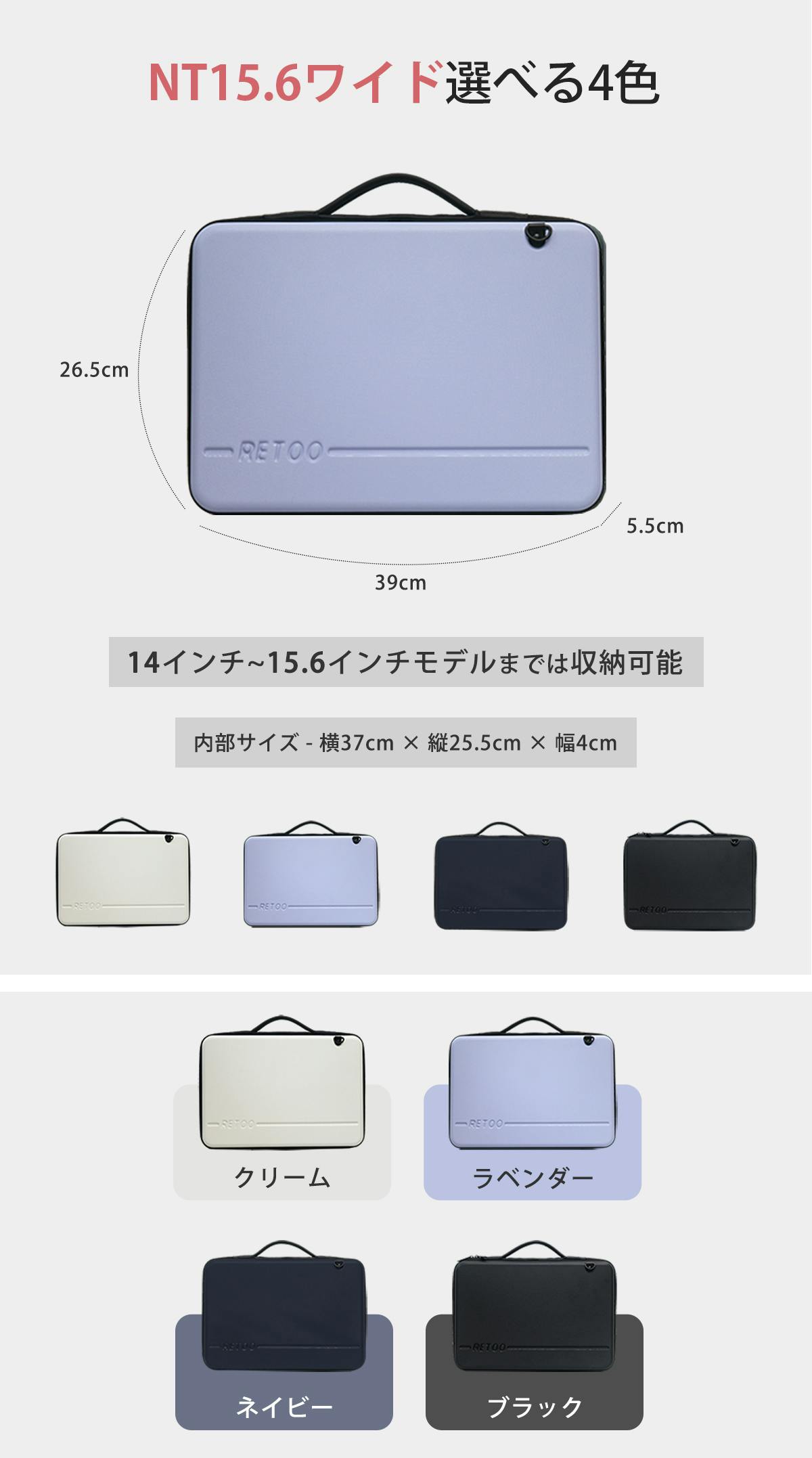 14インチ~15.6インチの一部モデルまでは収納が可能です。