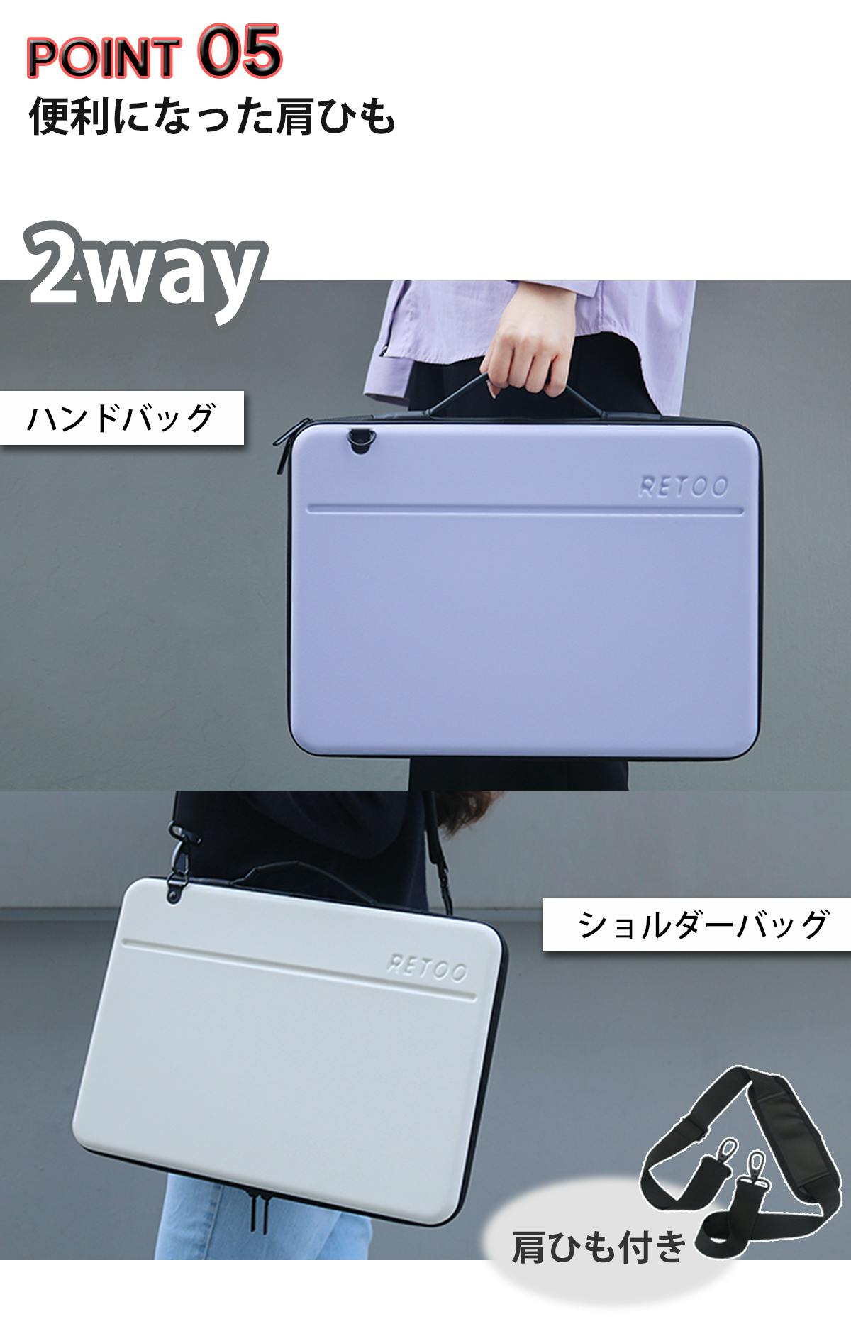 ノートパソコンケースがハンドバッグのみたいに、またクロスバッグ、ショルダーバッグのように様々な形に変形可能なので便利!