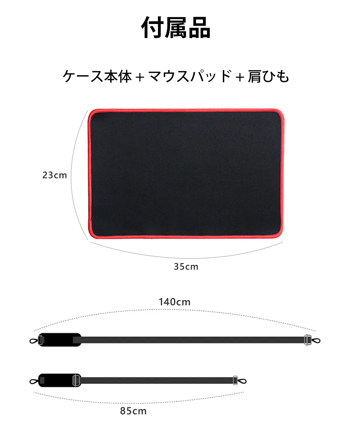 - 重さはマウスパッド、肩紐を除いた重さです。