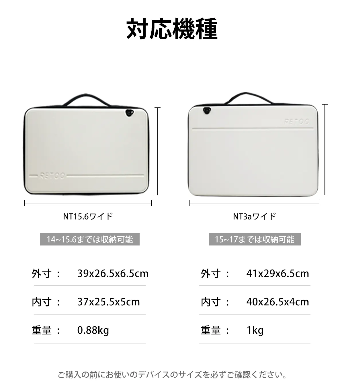 - お持ちのノートパソコンの外観サイズを必ずご確認ください!