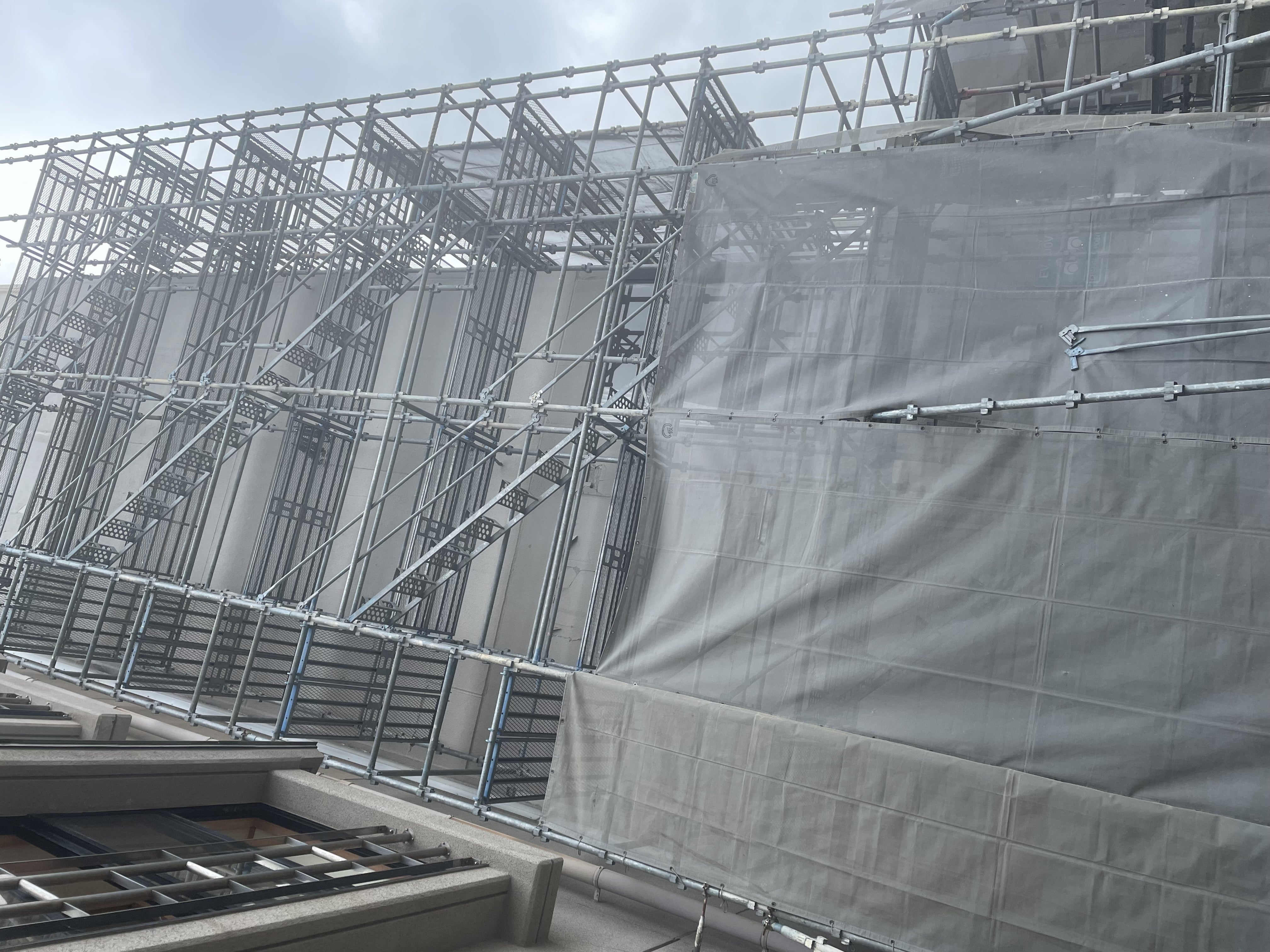 旅館の壁の修復をするのに足場をくみはじめています。ようやく本格工事にかかってきた感がでてきました。たくさん修繕が必要ですが動きだした事で元気がでます。
