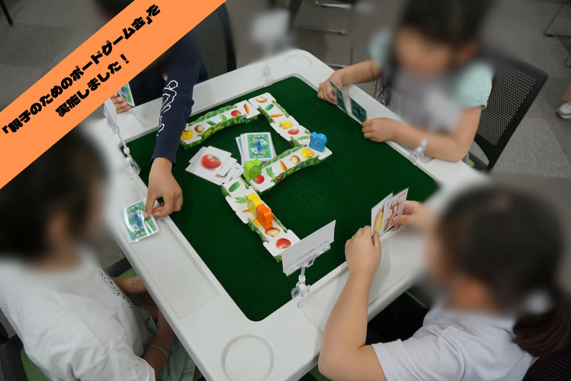 全員が初めてやるボードゲームでしたが,ルール説明の紙を読みながら自分たちで協力して準備したり,遠くて手が届かない子をサポートしてあげたりと,初めて会う子でもボードゲームを通して繋がりをもつ姿がとても印象的でした!「コミュニケーション力」の向上に繋がる瞬間が見られました。