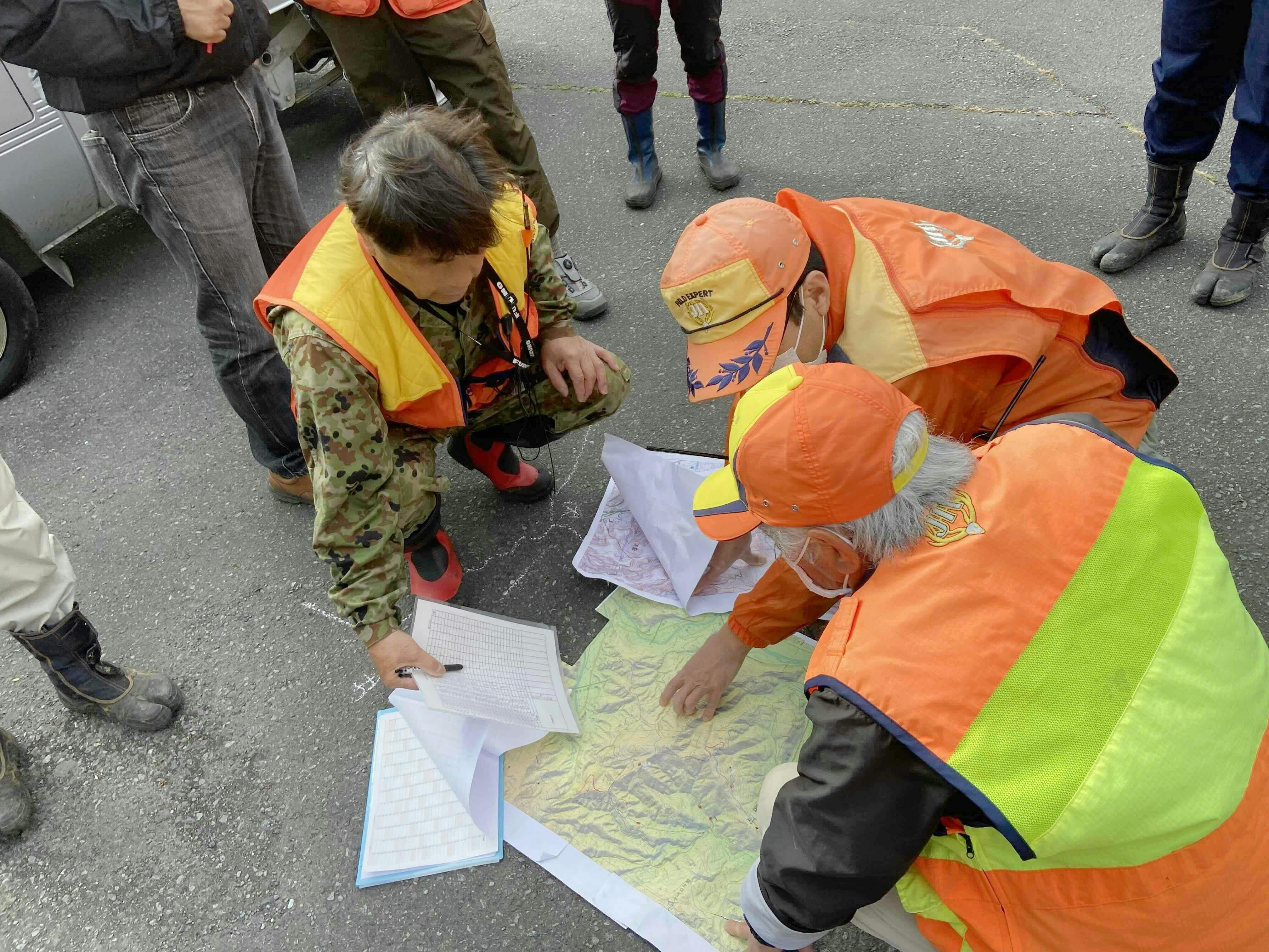 土地勘に詳しいベテラン猟師さんの作戦会議は身の安全のためにも超重要。
